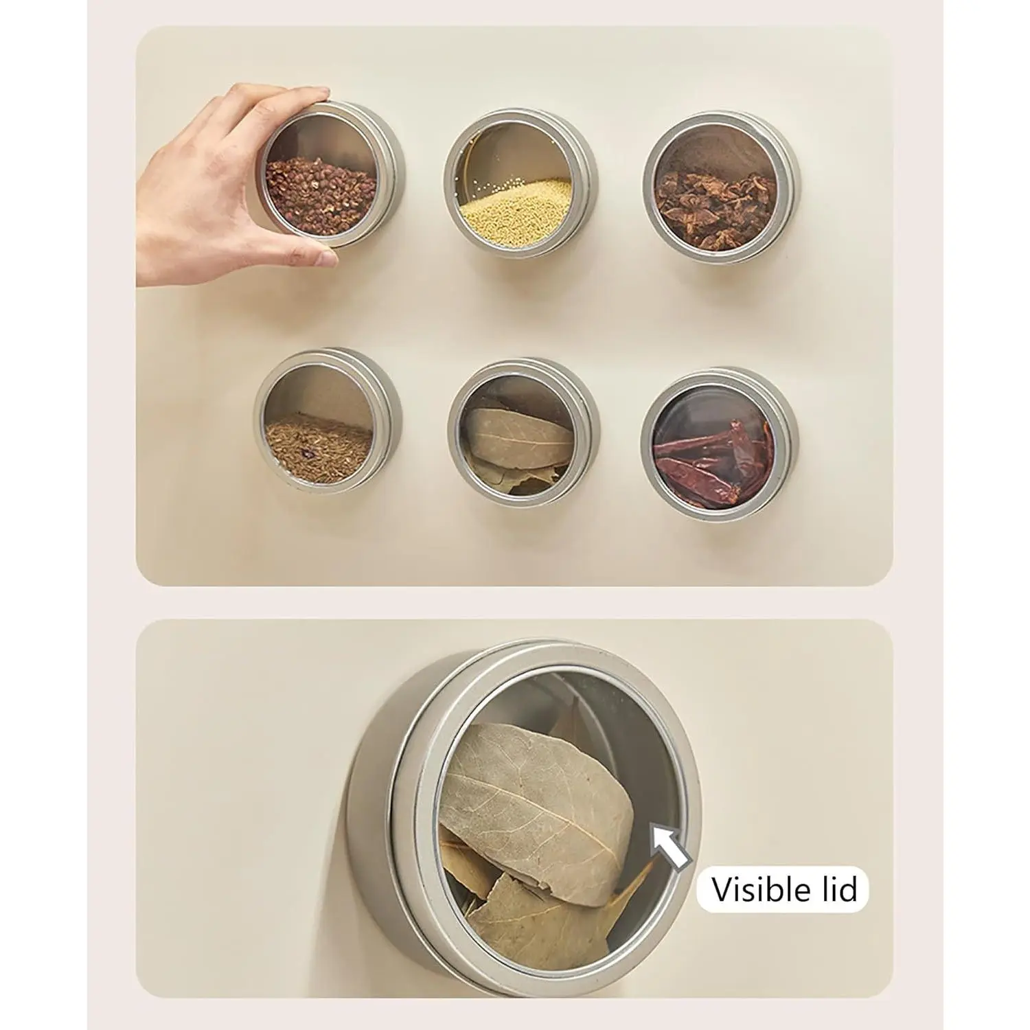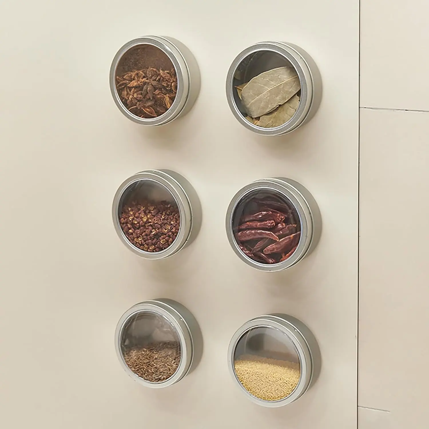 Magnetic Spice Jars Set of 4/6, Containers with Transparent Lid, Space Saving and Leak-Proof Design for Kitchen/Refrigerator, Wide Mouth Reusable Magnetic Spice Tins(6pcs)