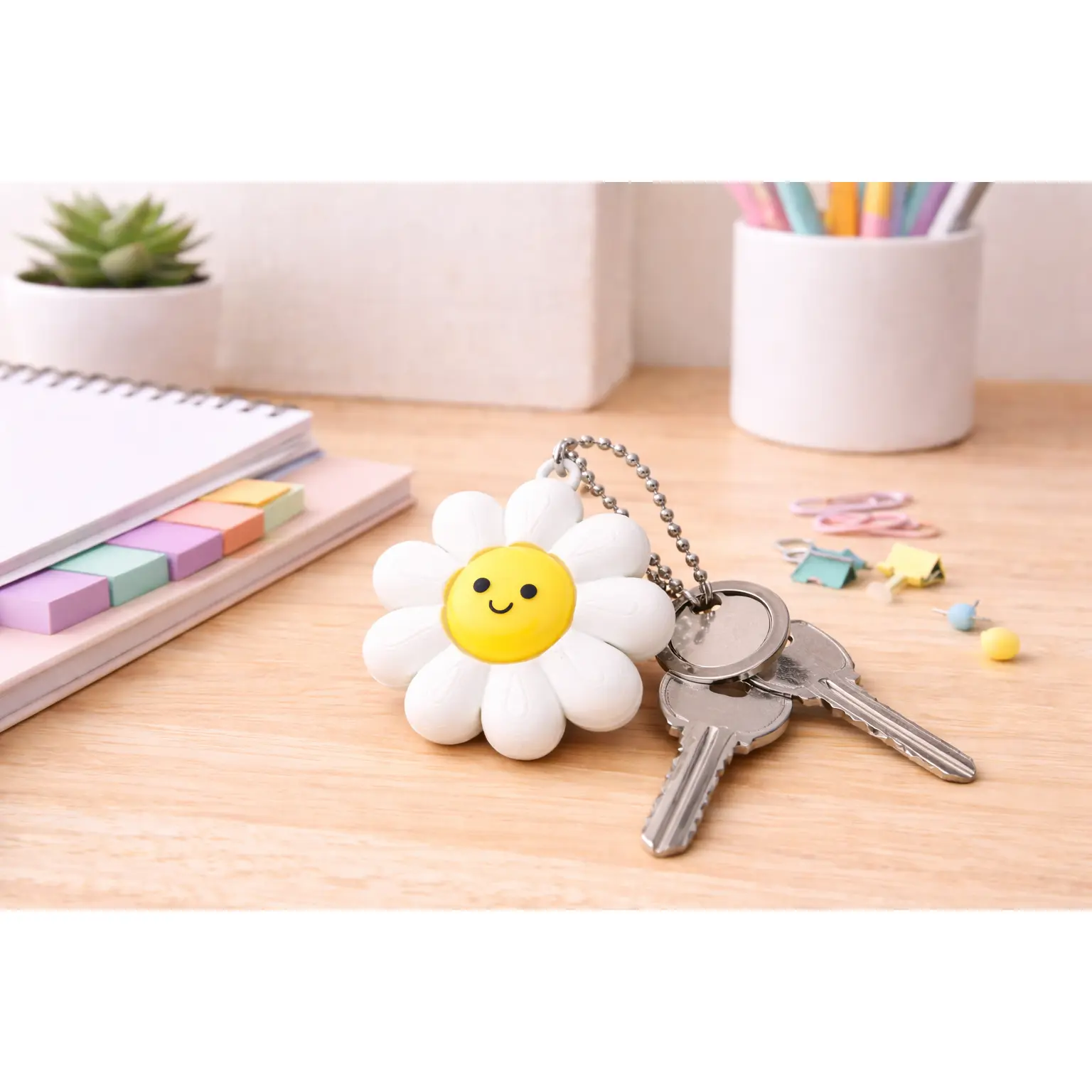 This adorable daisy fidget clicker keychain is designed to help you stay focused, relieve stress, and keep your hands busy — all while looking super cute on your keys or bag ✨
