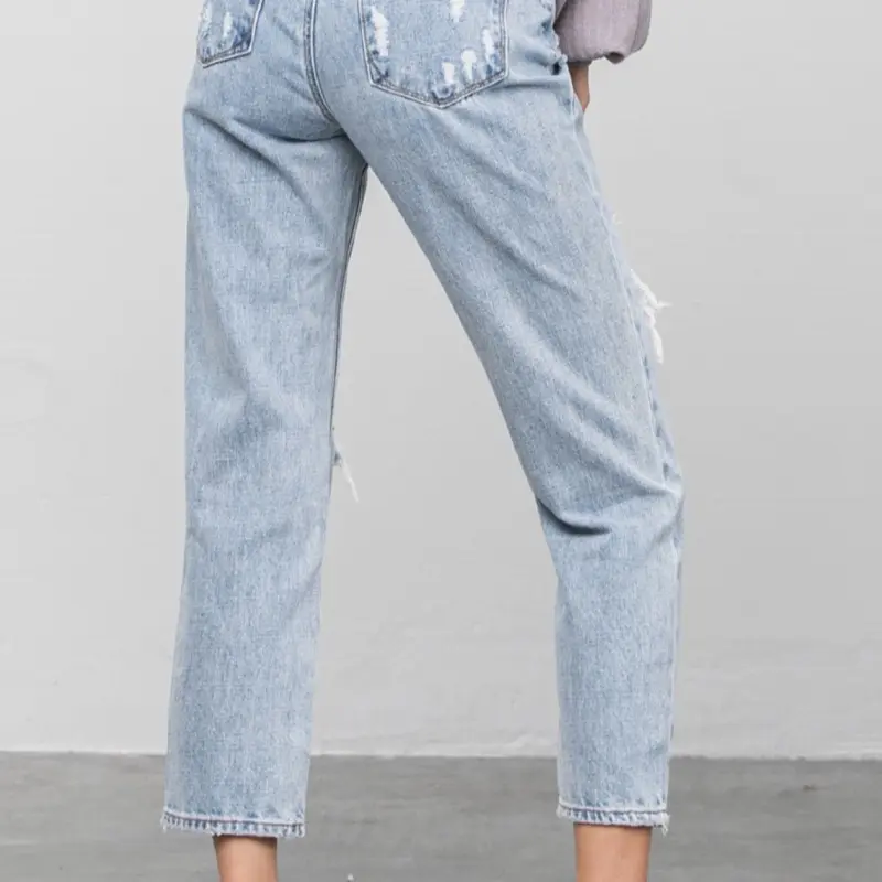 ·Distressed Details: Featuring ripped details, these jeans add a trendy edge to your wardrobe. Ideal for creating a fashionable statement. 🌟