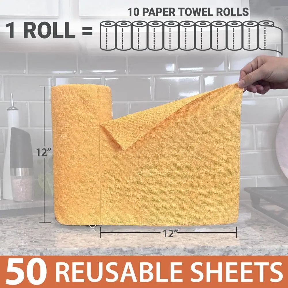 ·HDX Easy Tear Microfiber Cleaning Towels come in a convenient roll of 50 reusable cloths.