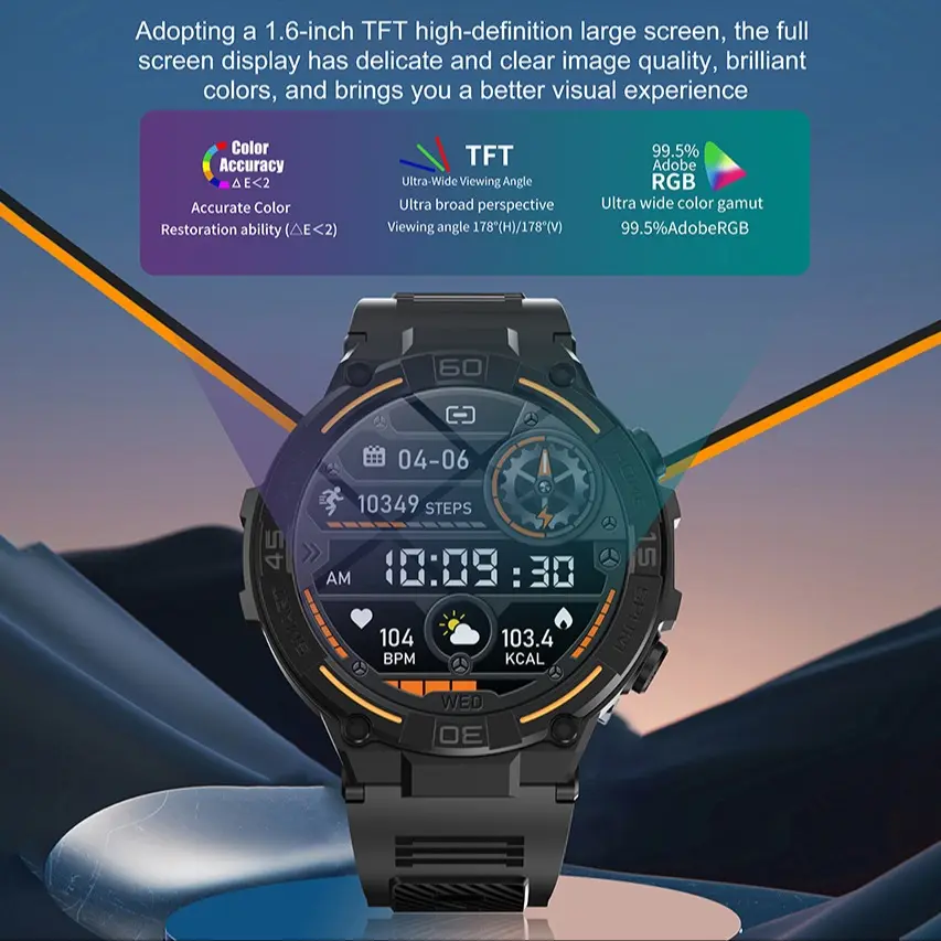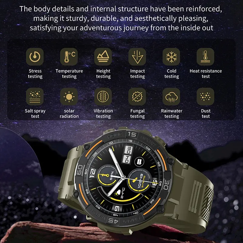Outdoor smart watch, 1.53-inch touch screen wireless calling, with over 100 sports modes and watch faces, AI voice assistant, compatible with Android and iPhone, flashlight function, fitness watch wearable device, ceramic resin strap waterproof watch.