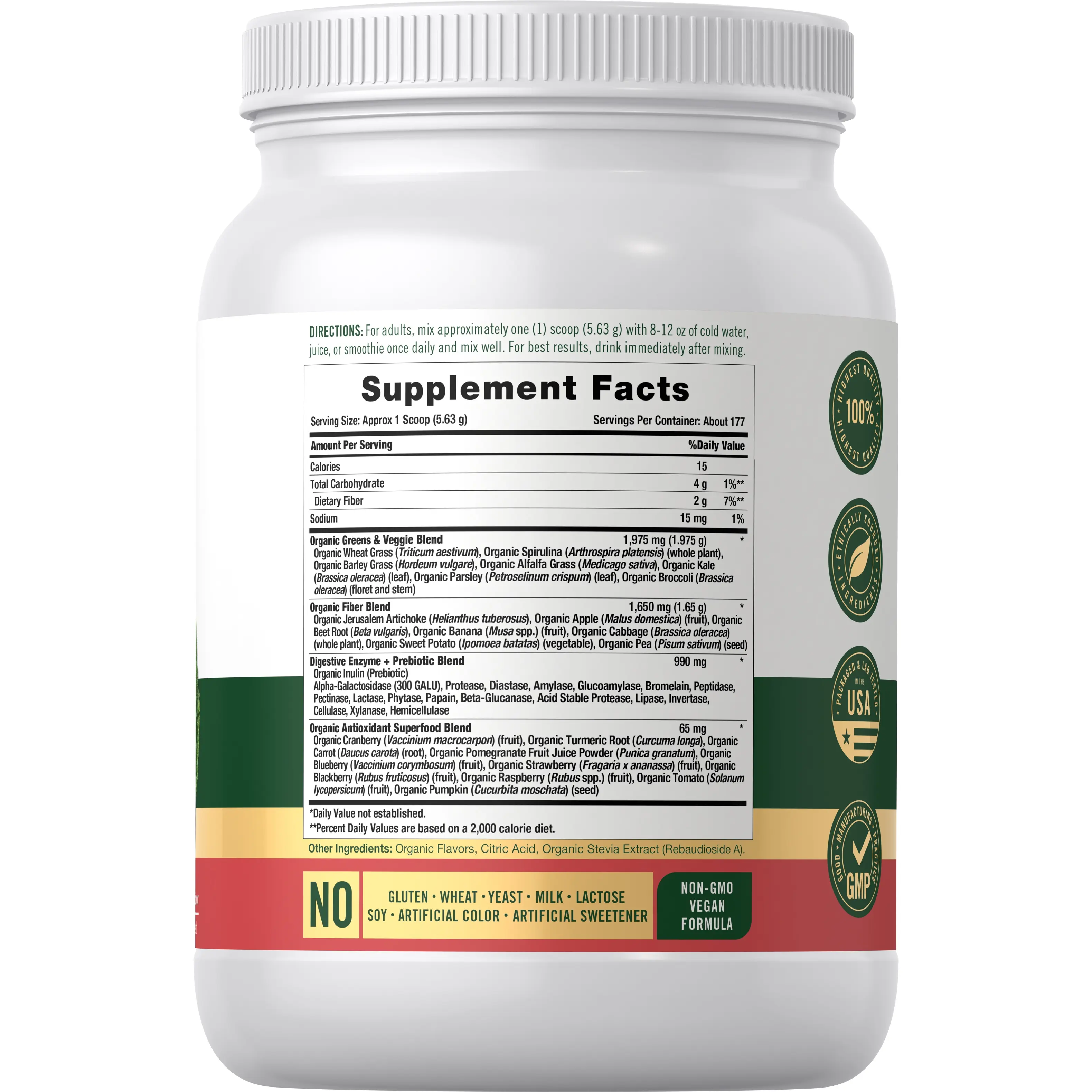 Experience superfoods in a whole new way with Carlyle Organic Greens strawberry kiwi flavored powder! Our unique formula provides an Organic Greens & Veggie Blend, Organic Fiber Blend, Digestive Enzyme + Prebiotic Blend, plus an Organic Antioxidant Superfood Blend, designed to help with occasional bloating.* Simply mix with water, your favorite juice, or a smoothie and enjoy!