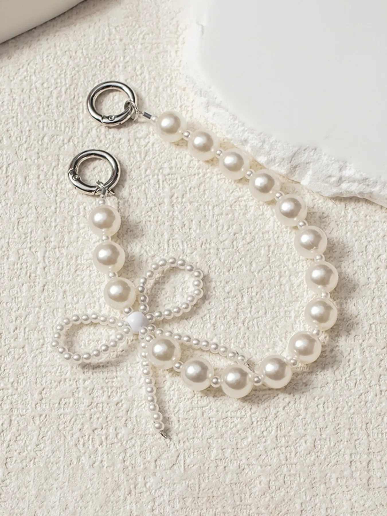 Elegant Pearl Bow Bag Charm & Phone Wristlet, Luxury Faux Pearl Handbag Pendant, Aesthetic Crystal Bow Keychain Accessory, Perfect Birthday Christmas Valentine's Day Gift for Women Girls, Trendy Bag Decor for Tote Backpack