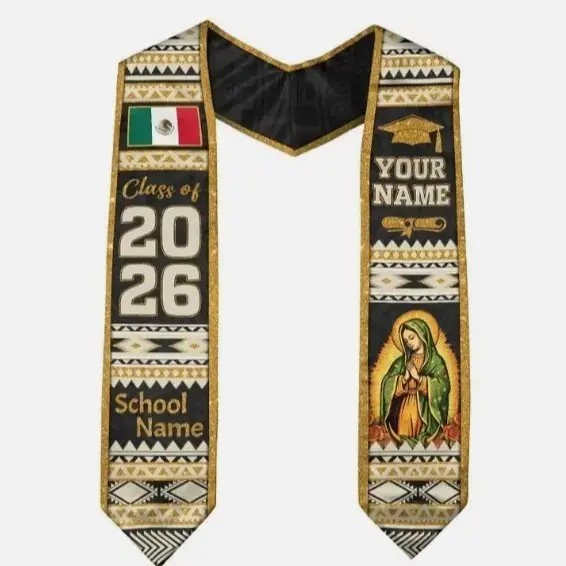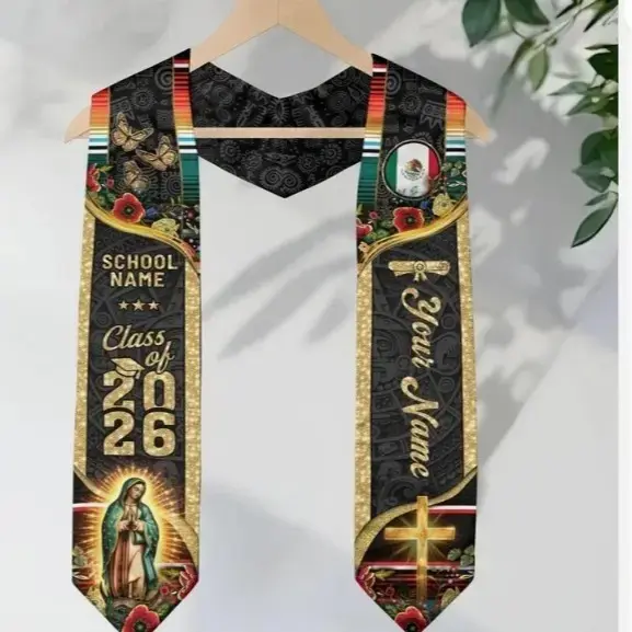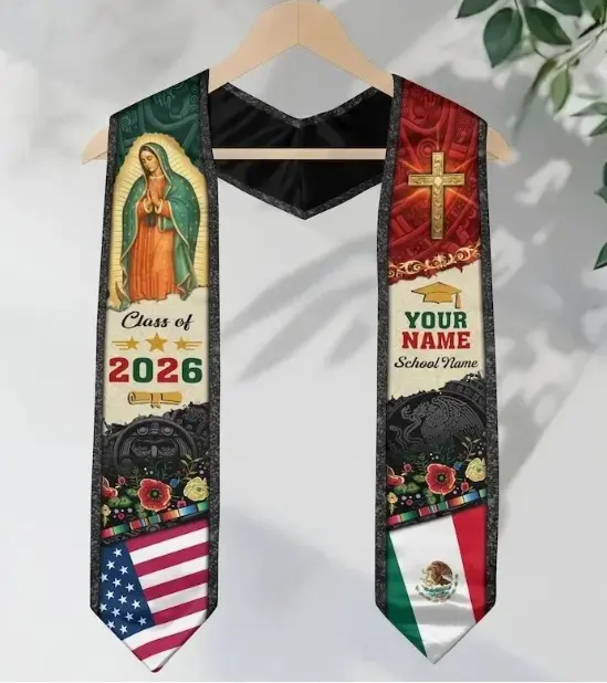 Custom Personalized Class of 2026 Graduation Stole - Mexico & USA Flag Hybrid Sash for International Students Serape Style Class of 2026 Sash | Patriotic Grad Accessory
