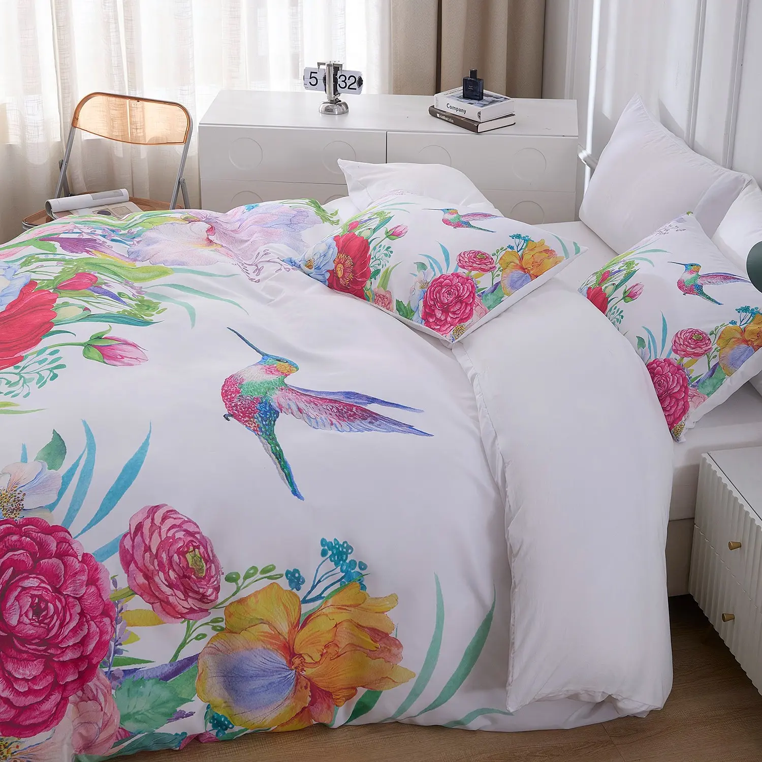 【Hummingbird Design】: Features a vibrant hummingbird pattern, adding a touch of nature-inspired beauty to your bedding.