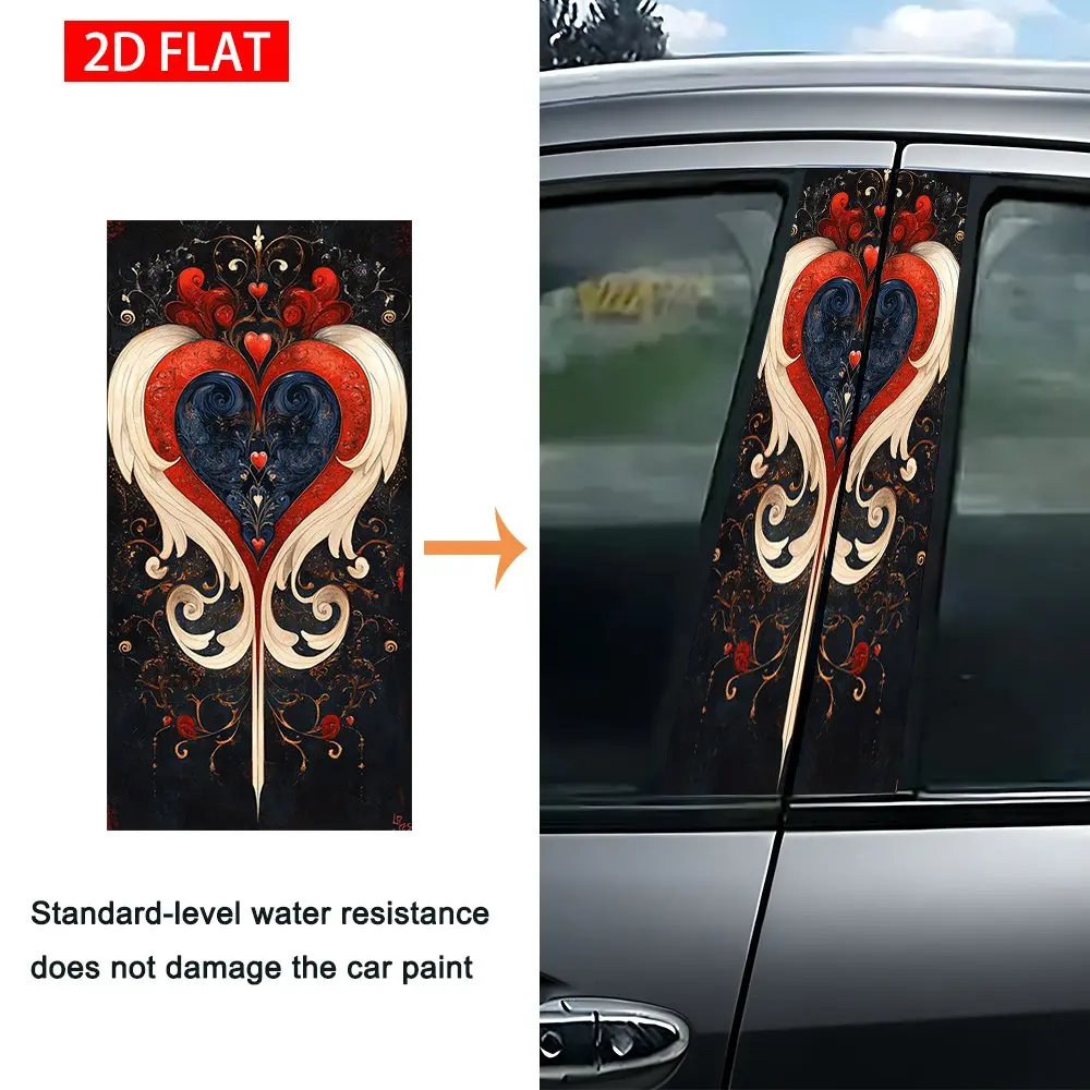 2Pcs Gothic Heart Pattern Car B-Pillar Sticker, PVC Self-Adhesive Decorative Sticker, Waterproof Scratch-Resistant, Perfect For Car Exterior Decoration, Auto Exterior Accessory