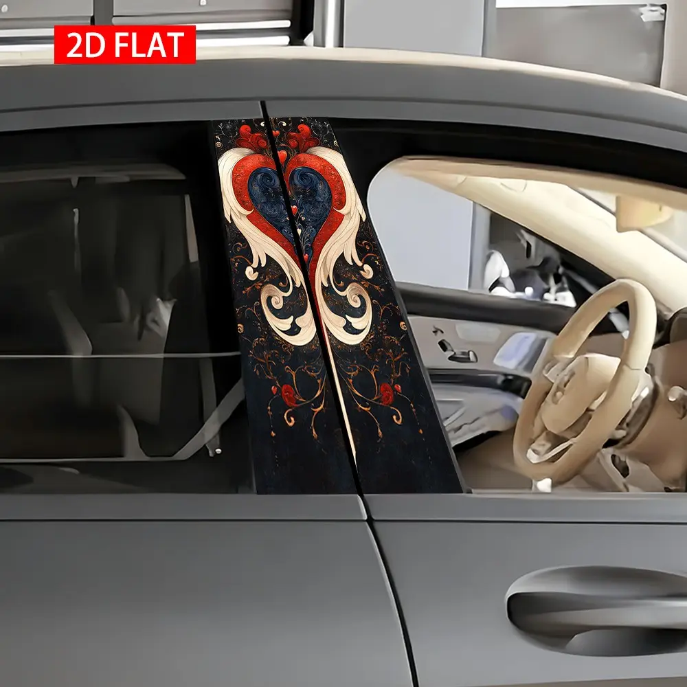 2 Sets Heart-Shaped Baroque Style Car B Pillar Stickers, Self-Adhesive PVC Decorative Stickers, Waterproof Scratch-Resistant, Car Exterior Accessories
