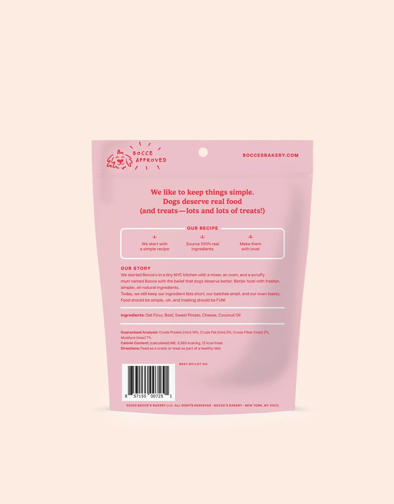 These "fast food" faves are made the good way, from four simple ingredients: oat flour, cheddar cheese, sweet potatoes, and 100% USA beef. Oh, and did we mention 14% protein? You’re welcome, cross-fit pups.