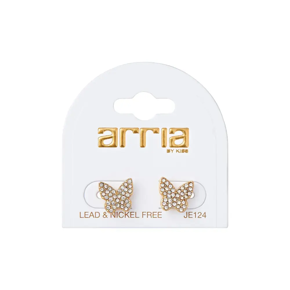 Arria Sparkling Butterfly Stud Earrings in Gold Tone with Glass Stones – 10.5mm