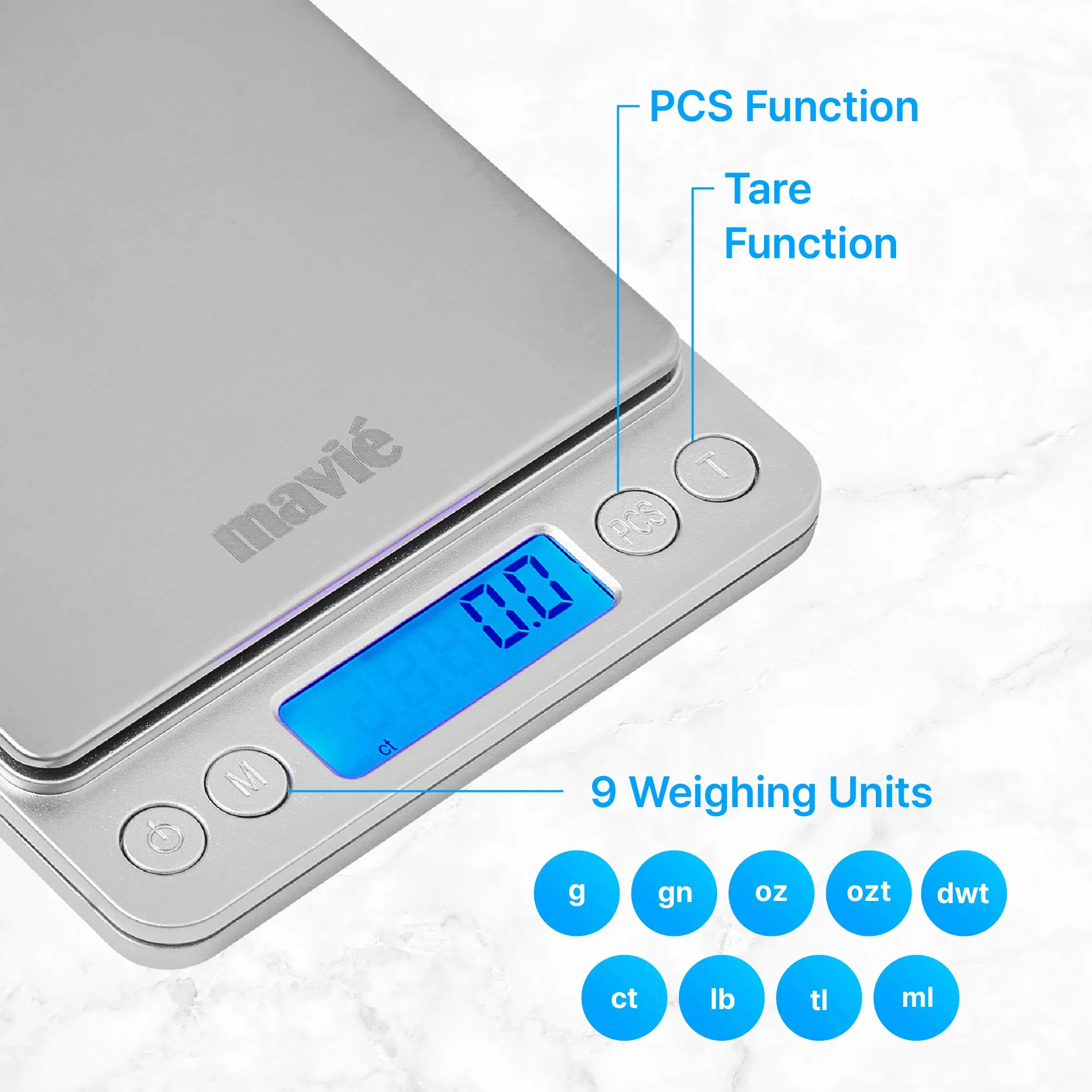 ·Versatile 9-unit system: Instantly switch between g, gn, oz, ozt, dwt, ct, lb, tl, and ml. Whether you are weighing jewelry, medication, or food ingredients, this scale adapts to your specific needs.