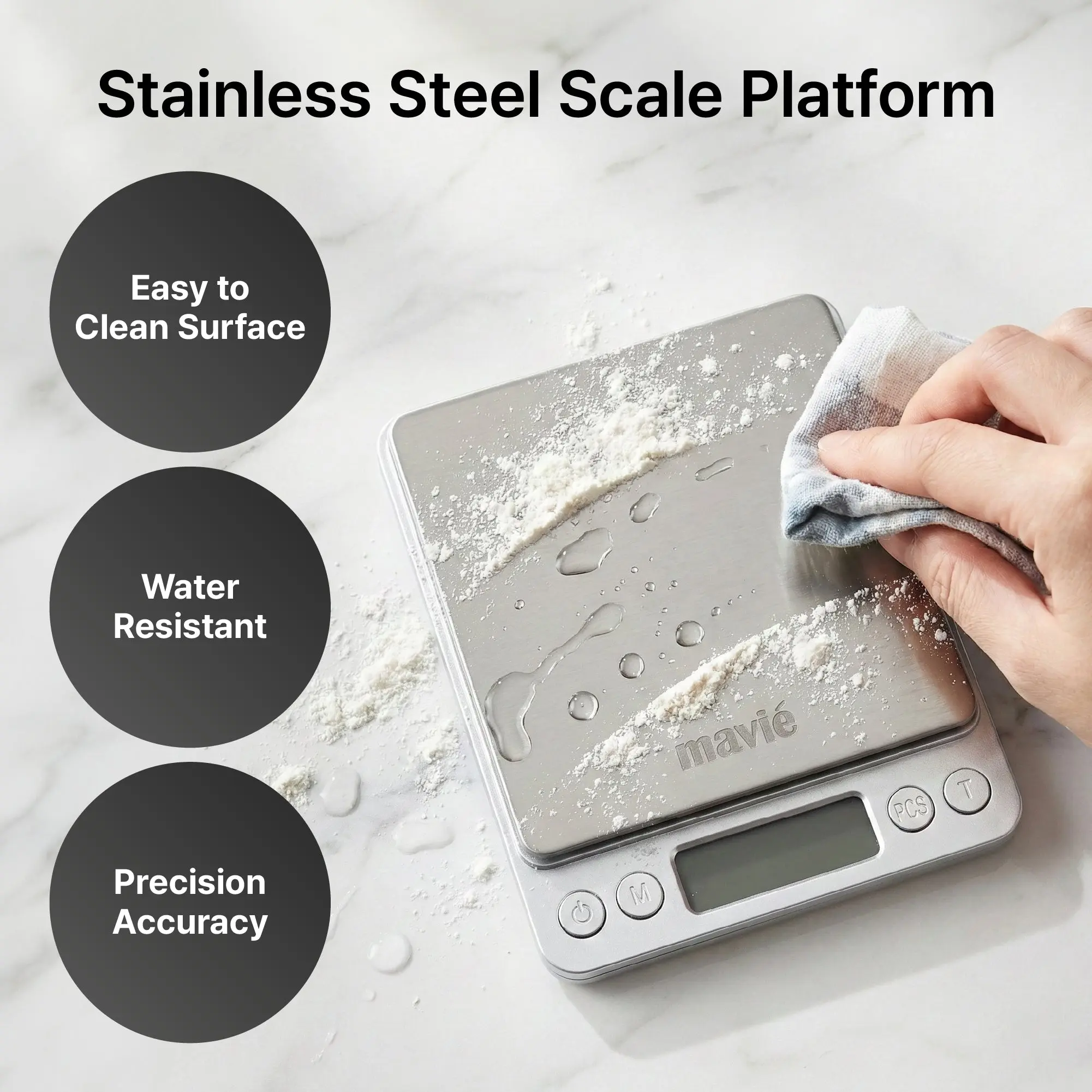 ·Auto calibration and tare: Enjoy professional accuracy every time. Features auto-calibration for precision and a Tare function to zero out the weight of containers or trays.