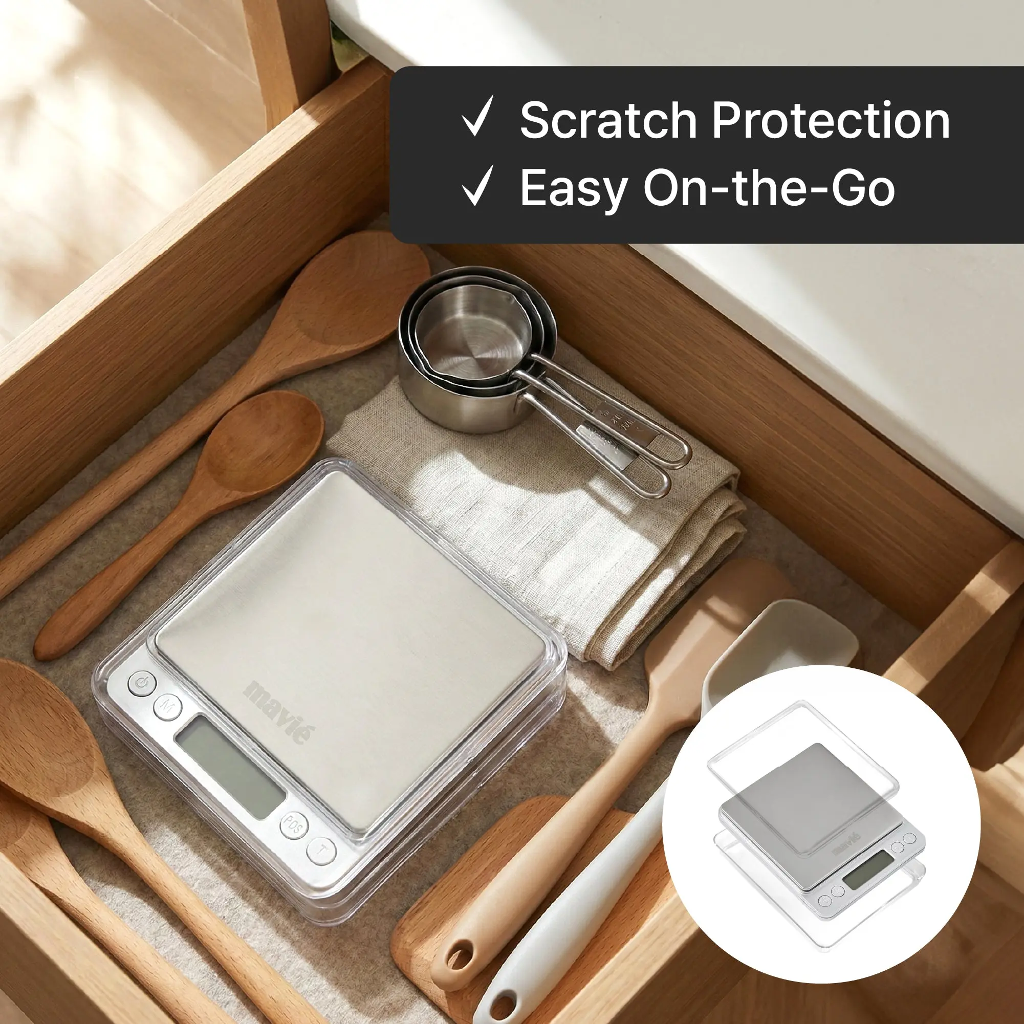 ·Portable and scratch resistant: Built for life on the move. The sleek stainless steel platform is durable and easy to clean, while the included case protects the device from scratches and damage during travel.