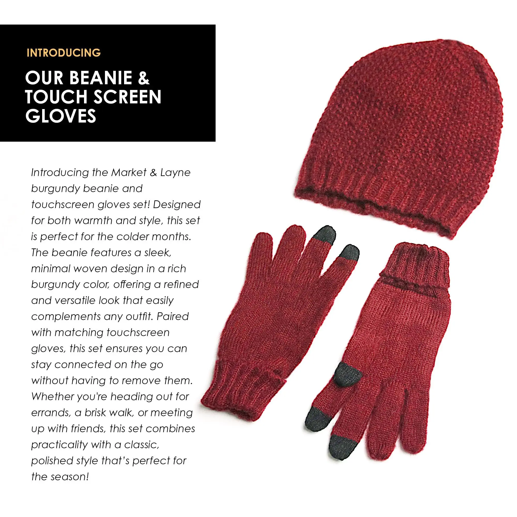 Market & Layne Beanie and Gloves for Women – Perfect Winter Gifts for Women, Warm & Stylish