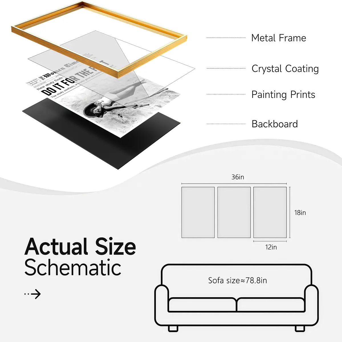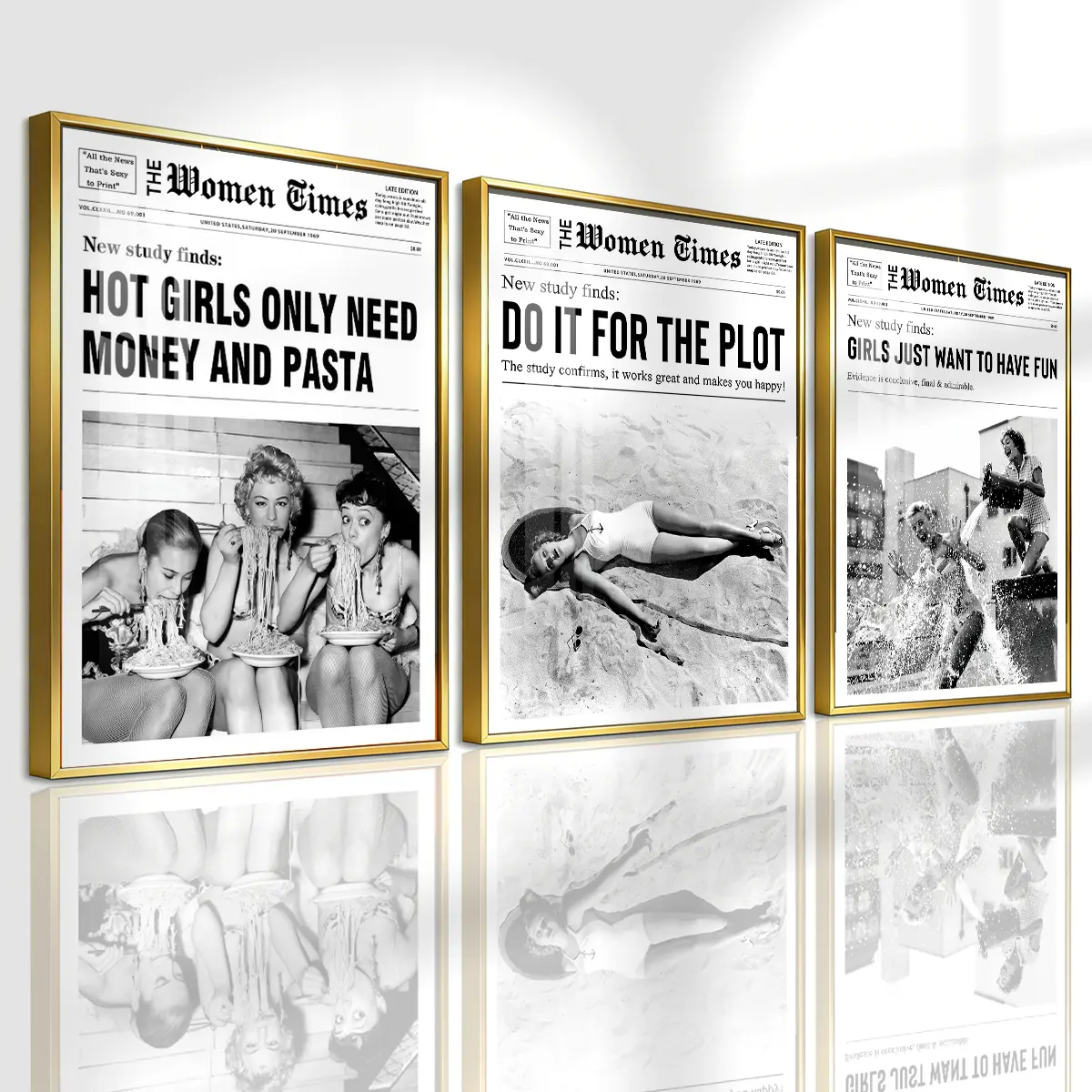 3 Counts Aluminum Alloy Framed Painting, Vintage Women Newspaper Poster Set, Home Decoration For Living Room, Bedroom, Office, Restaurant, Hallway Wall Decor, Odorless Print Artwork, Luxury Perfect Gift For Friends And Family