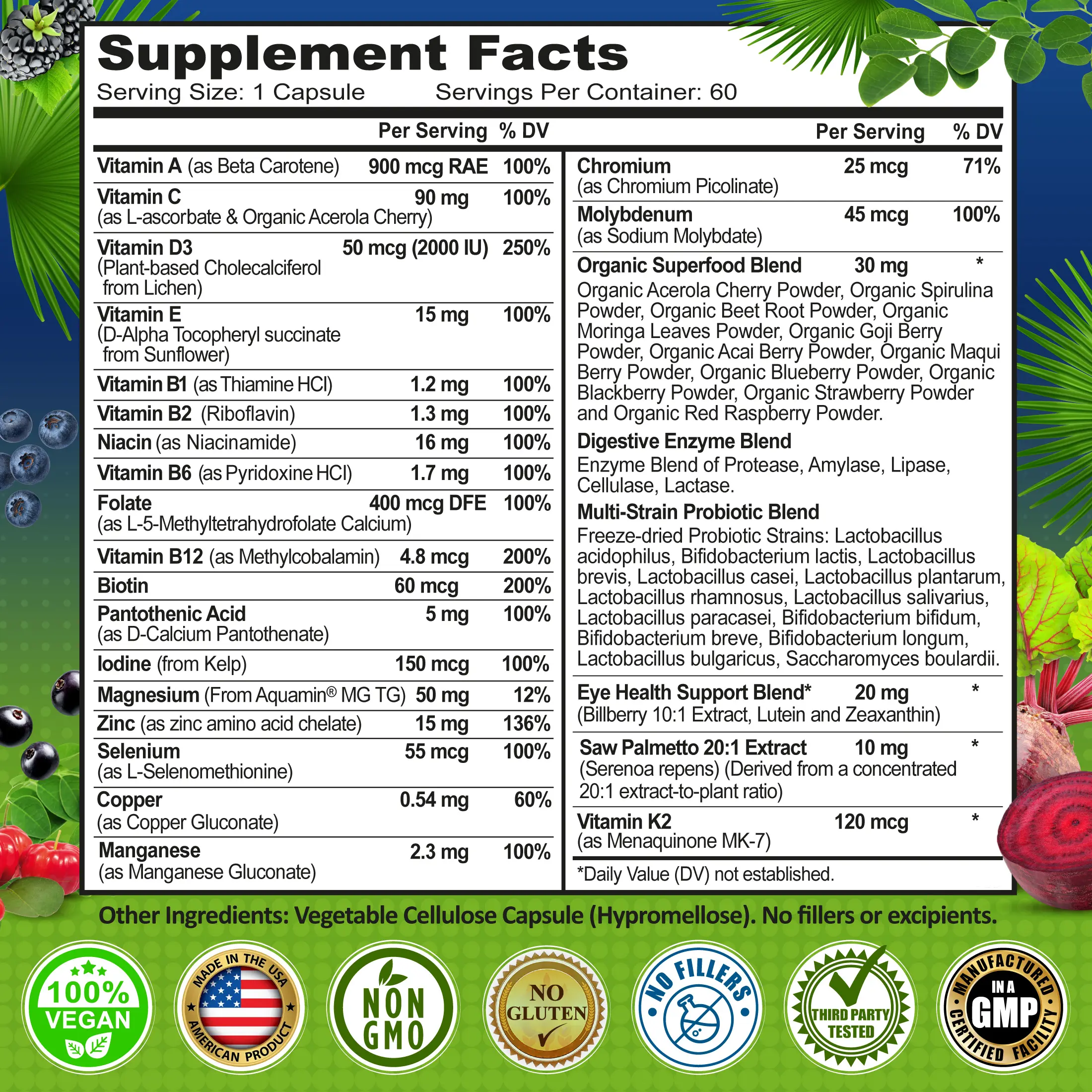 ·With Eye Support, Probiotics & Enzymes – Formulated with lutein, zeaxanthin, and bilberry, along with probiotics and digestive enzymes to support vision, digestion, and daily well-being.