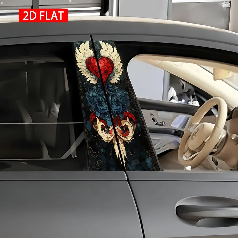 2Pcs Gothic Heart Pattern Car B-Pillar Sticker, PVC Self-Adhesive Decorative Sticker, Waterproof Scratch-Resistant, Perfect For Car Exterior Decoration, Auto Exterior Accessory