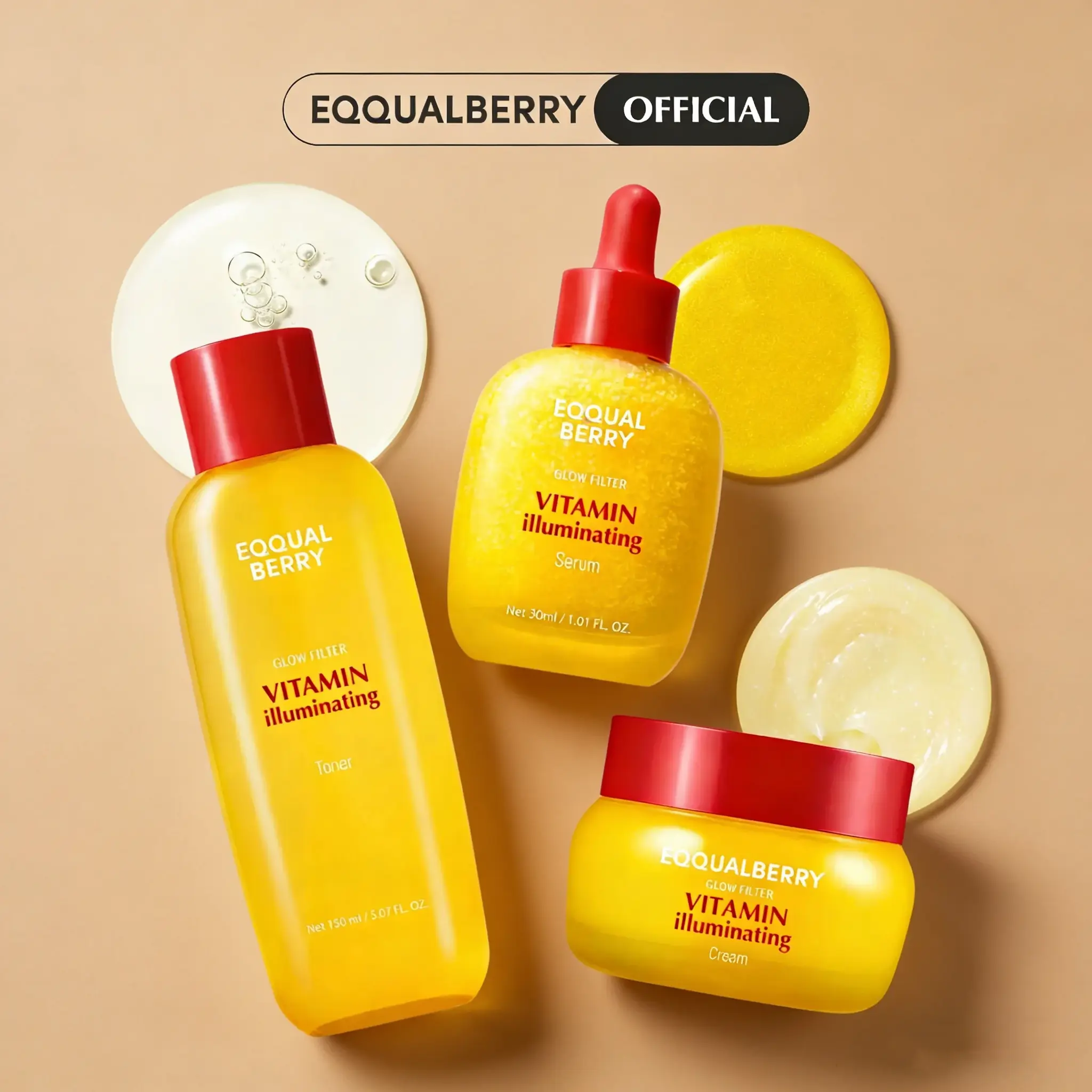EQQUALBERRY Vitamin I lluminating Serum & Cream Set -Vitamin C & Niacinamide | Targets Dark Spots | Strengthens Skin Barrier with Ceramides | Glowy,Lightweight Hydration