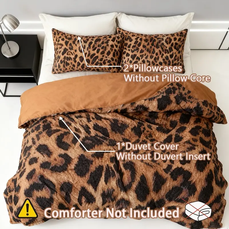 3pcs Leopard Print Bedding Set, Includes 1 Duvet Cover + 2 Pillowcases No insert, Soft and Comfortable, Perfect Gift for Bedroom Decor