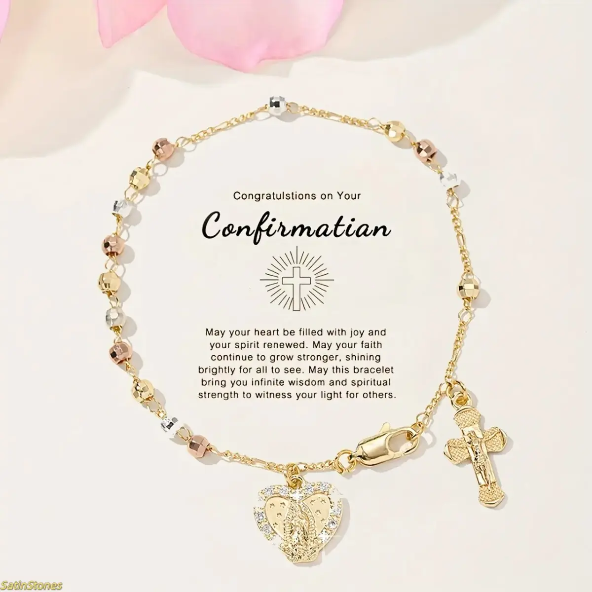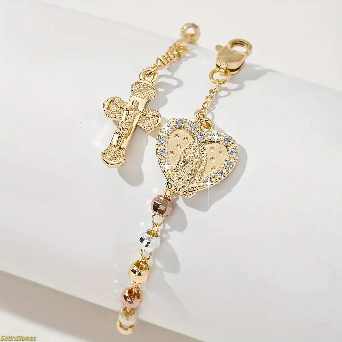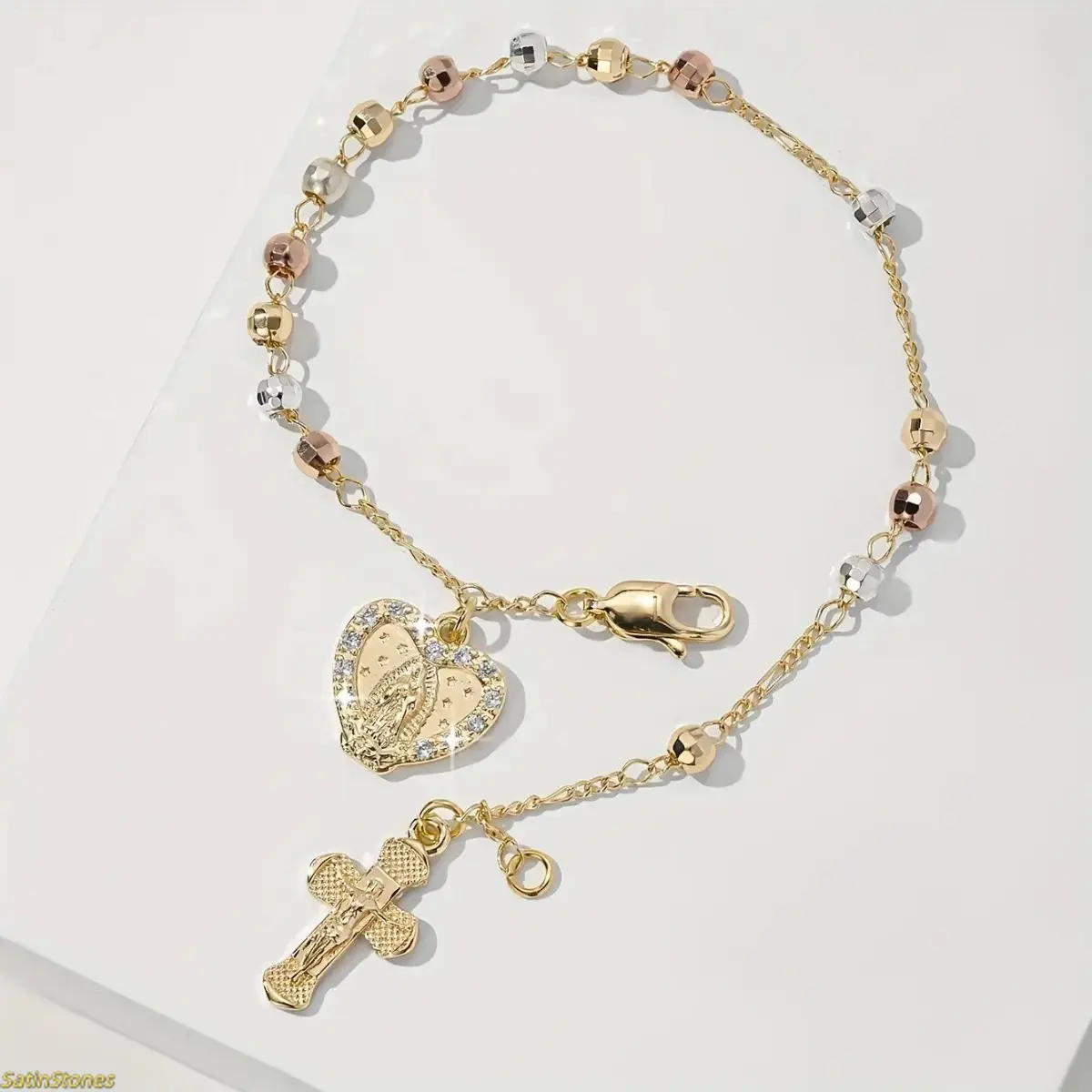 2026 Best-Selling Cross & Heart Bracelet—Featuring Micro-Set Tri-Color Octagonal Beads. This "Light Luxury" Gold Jewelry Piece is the Ultimate Gift for Mothers and Girlfriends—A Perfect Selection for Mother's Day.