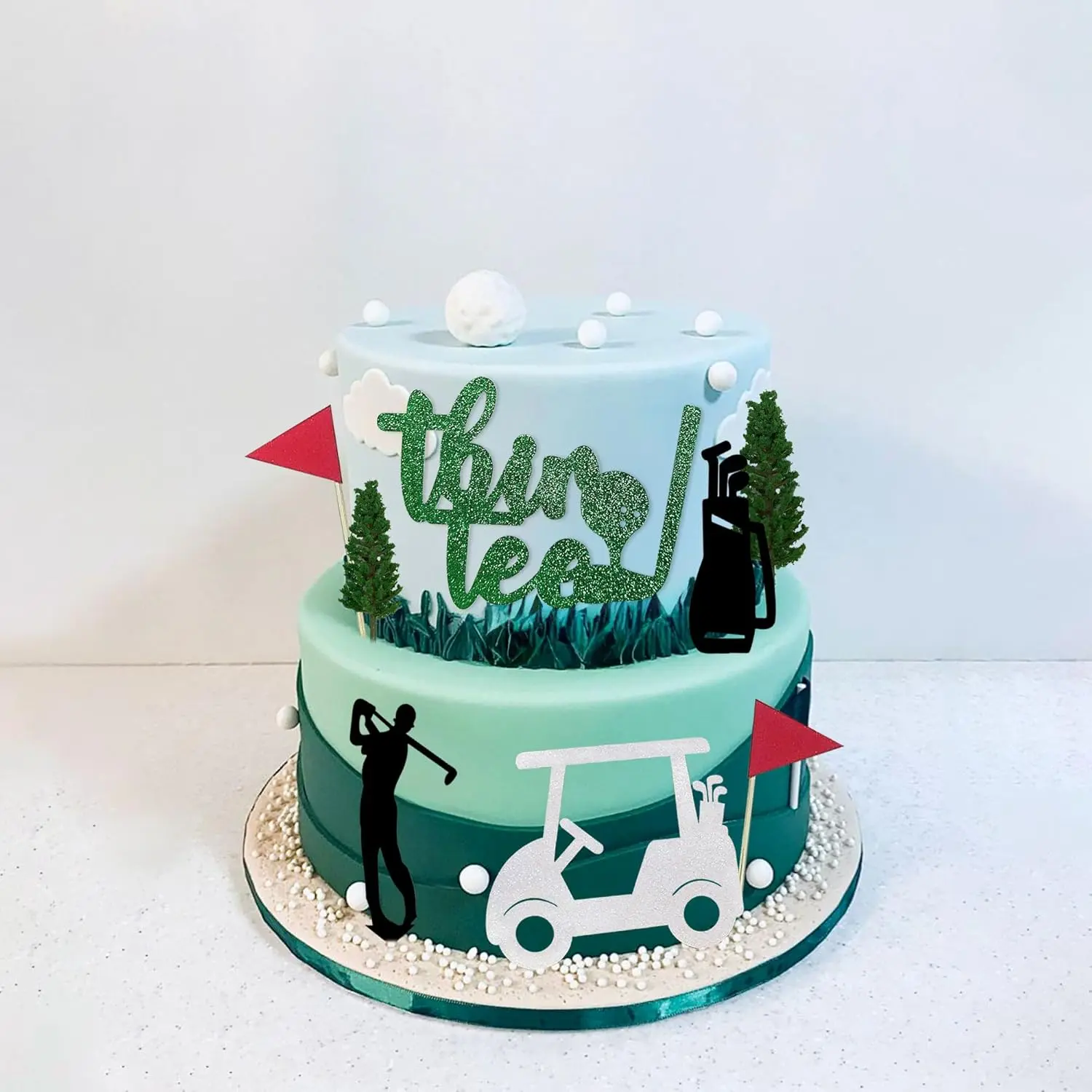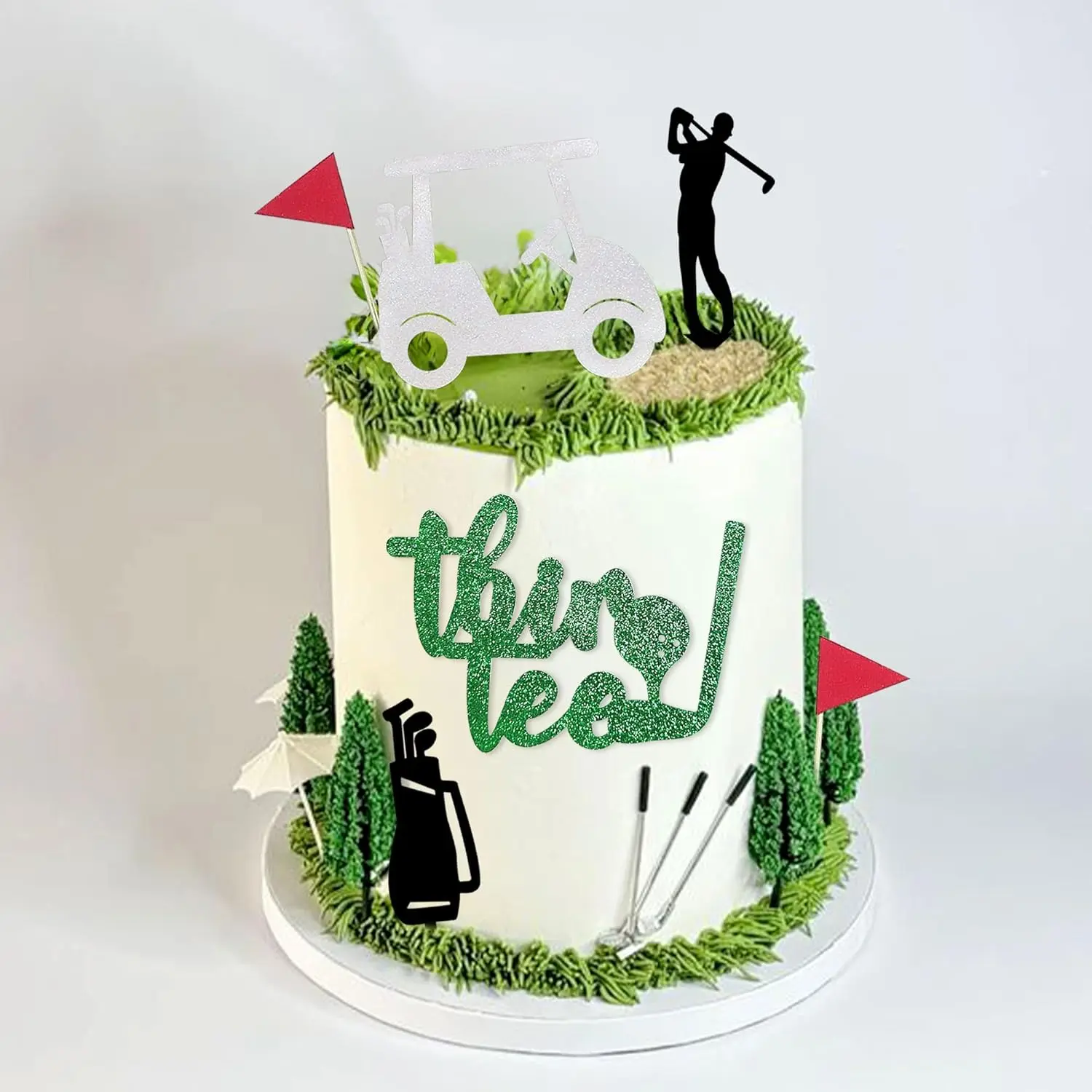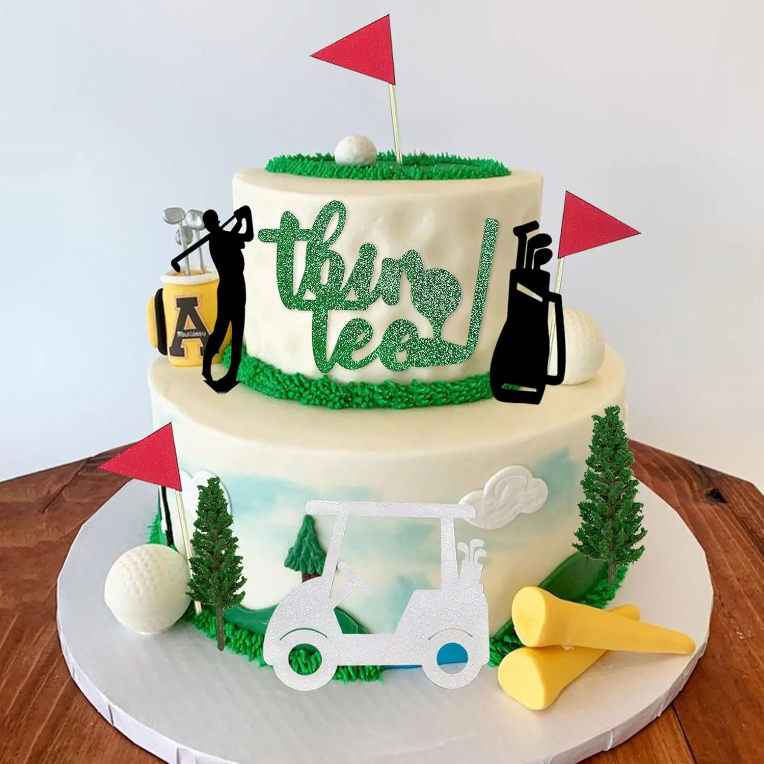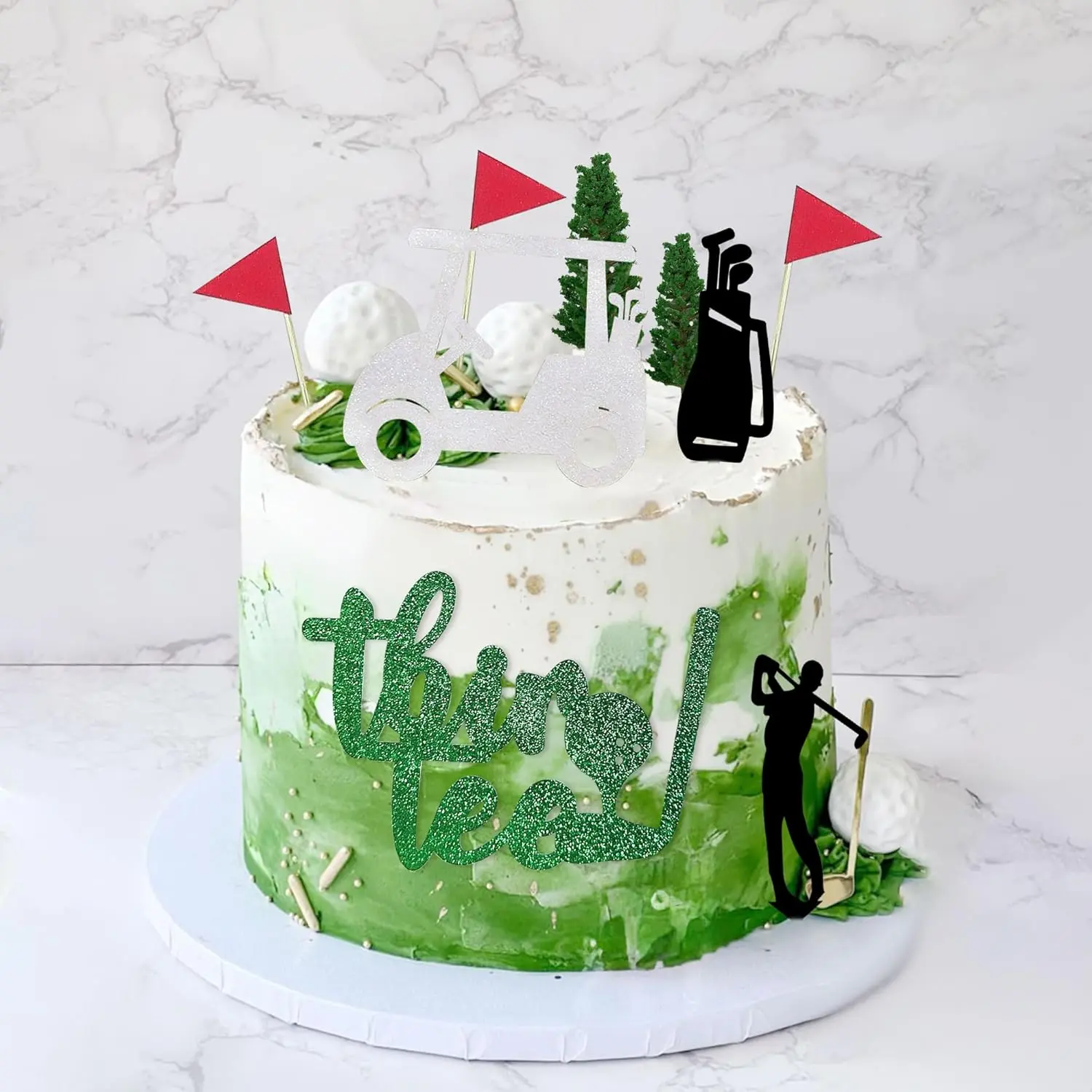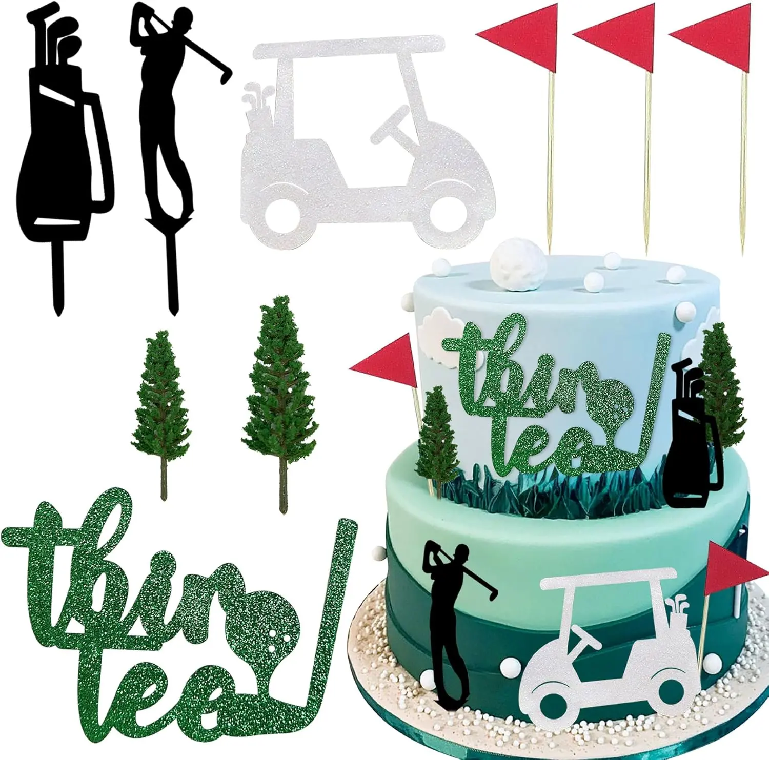 Package Includes:You will receive 9 golf cake toppers (1 white golf cake topper, 1XThir tee golf cake topper, 3 golf flags, 2 black cake toppers and 2 greens),creating a vibrant and cohesive look for your golf party.
