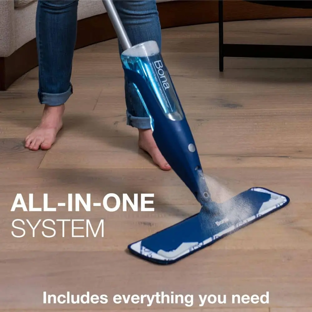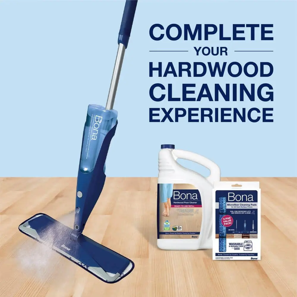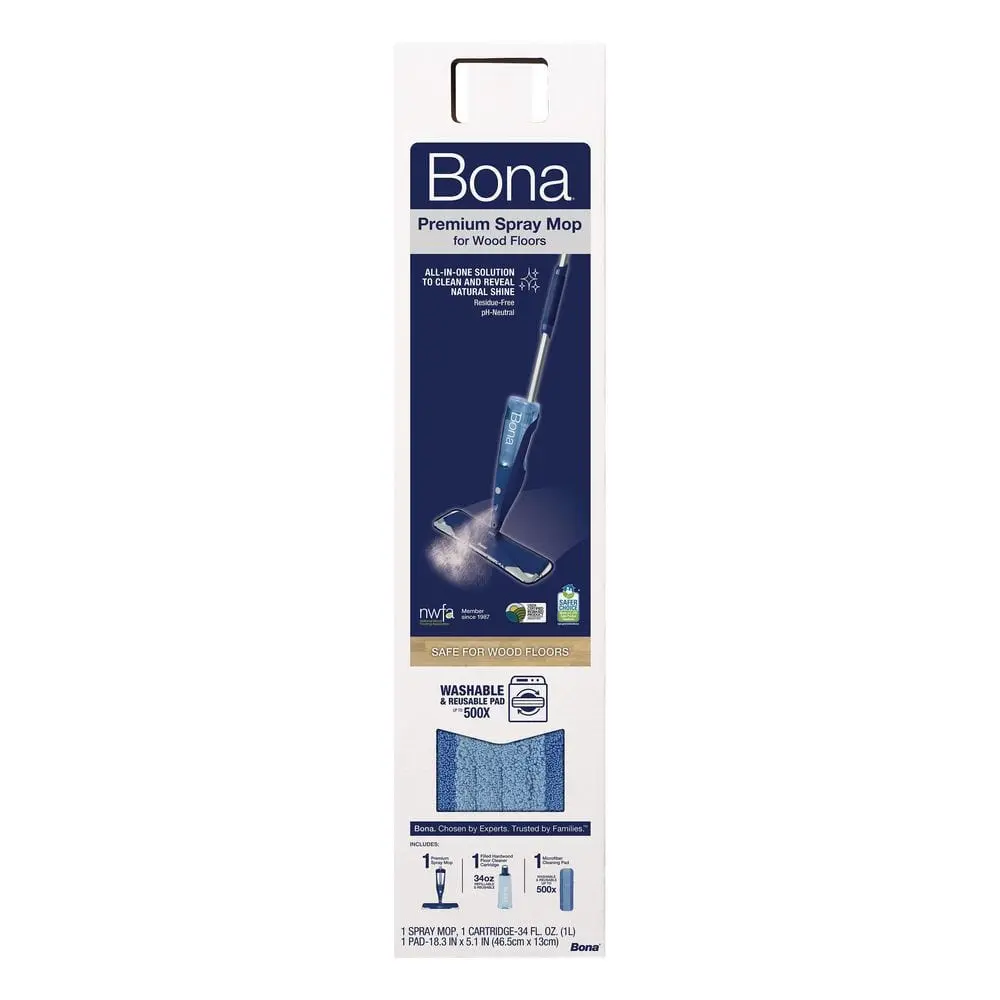 ·Includes Bona’s pH‑neutral Hardwood Floor Cleaner (95% USDA biobased, Safer Choice Certified) plus a refillable cartridge
