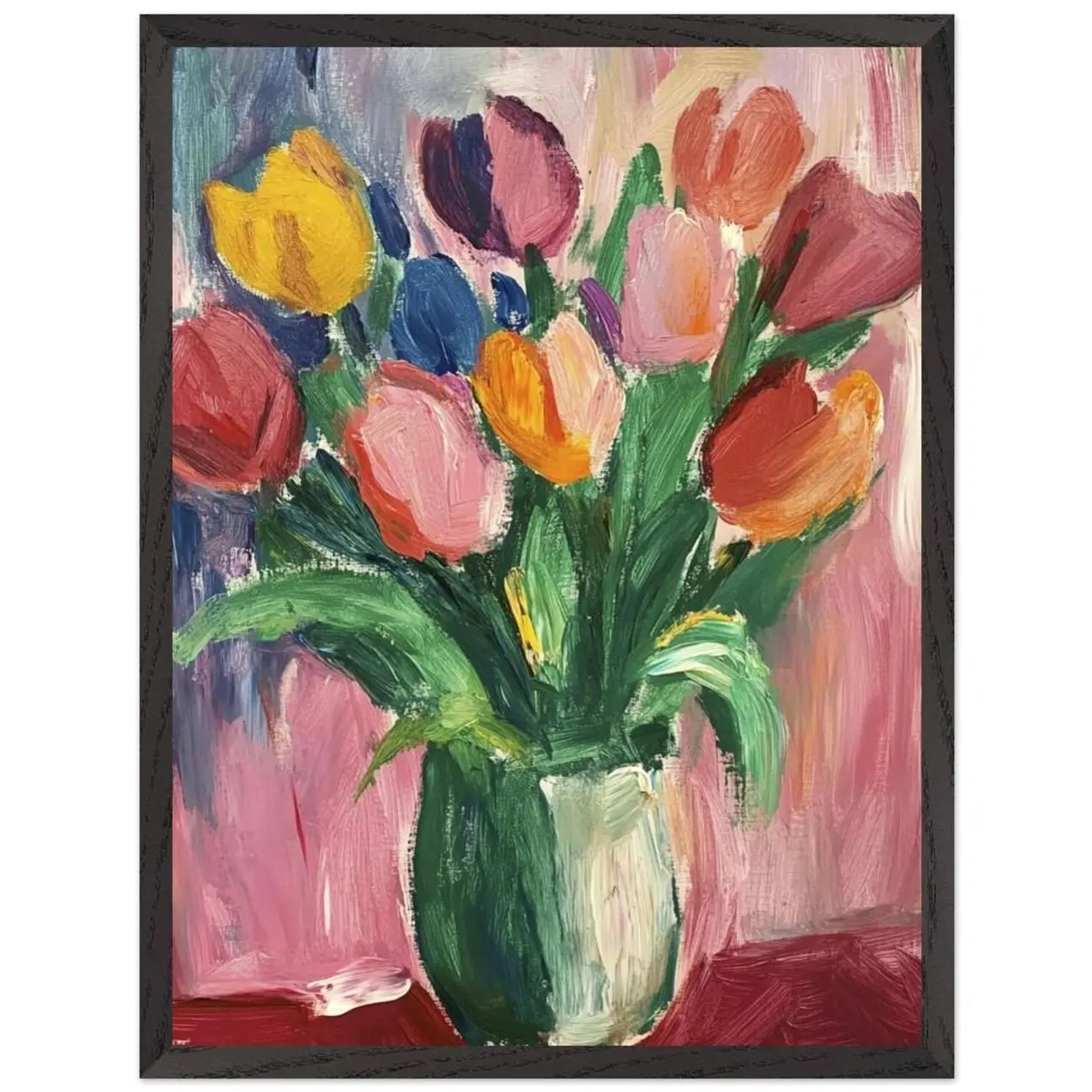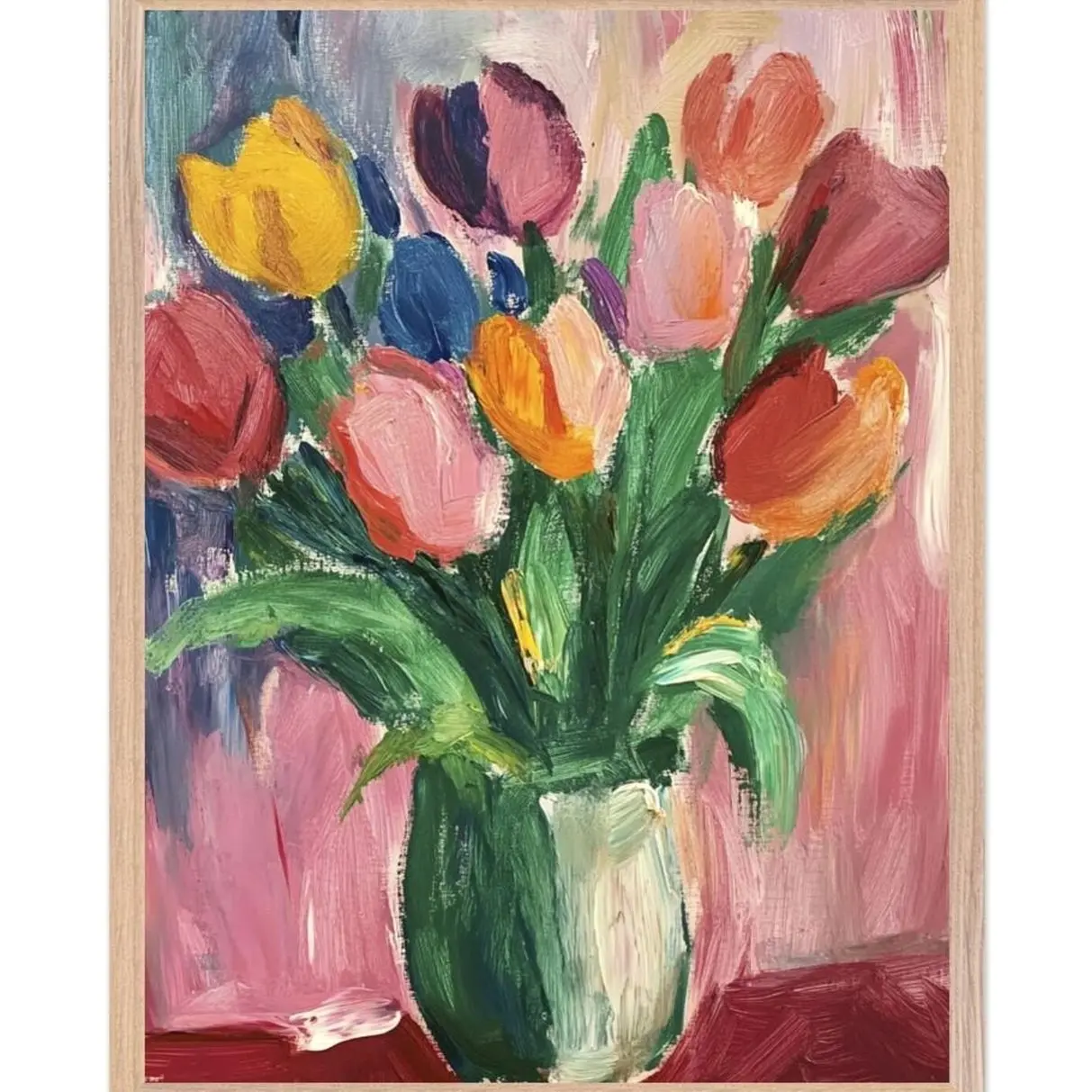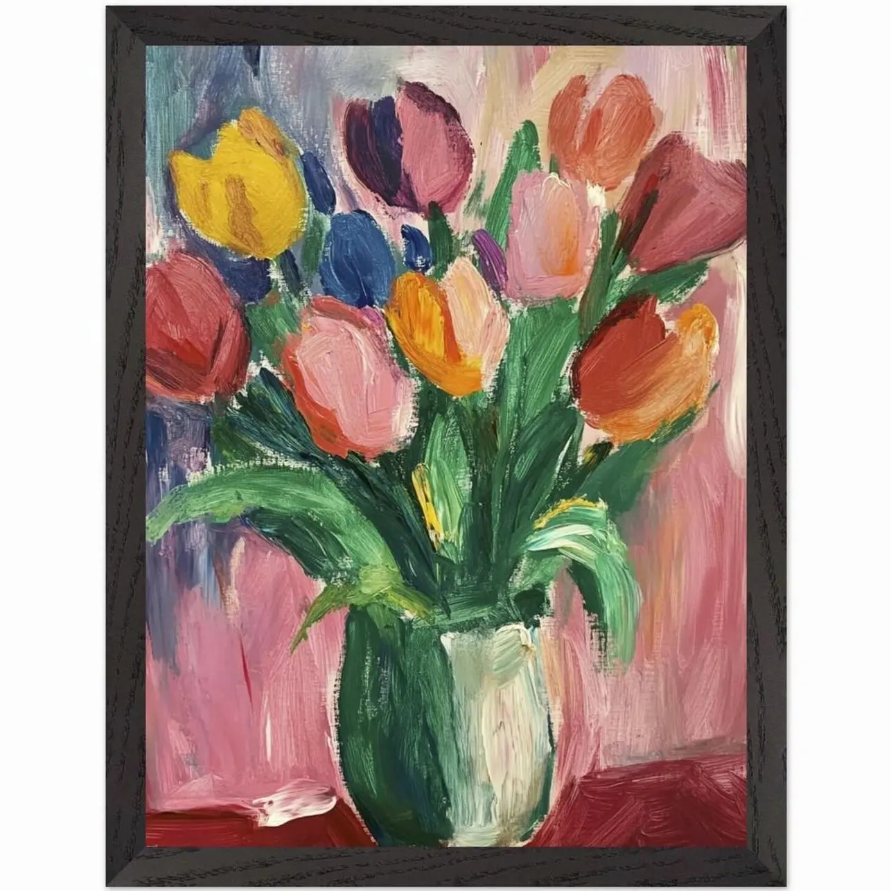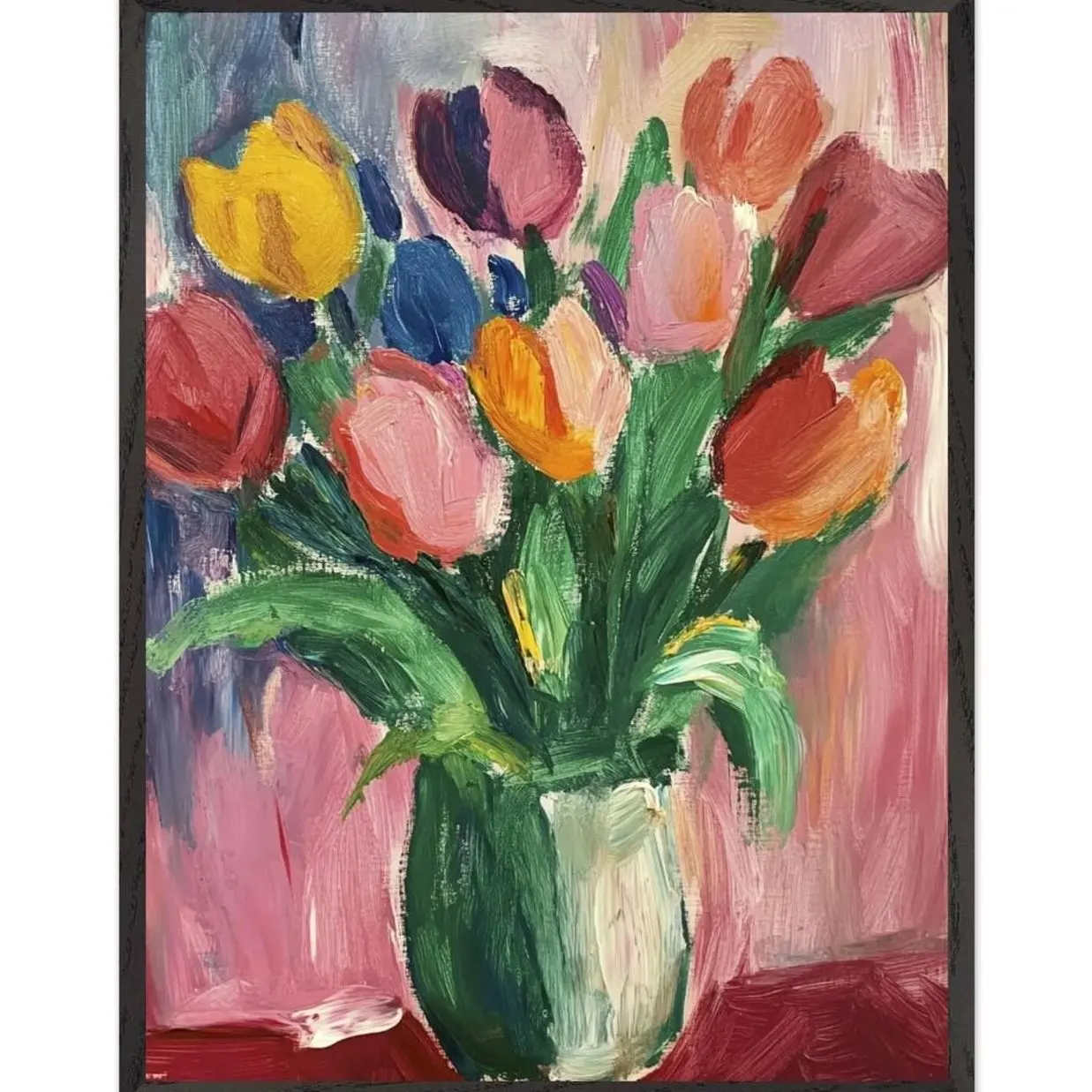 Tulips in Green Vase Framed Poster – Vibrant Floral Painting | Unframed Y