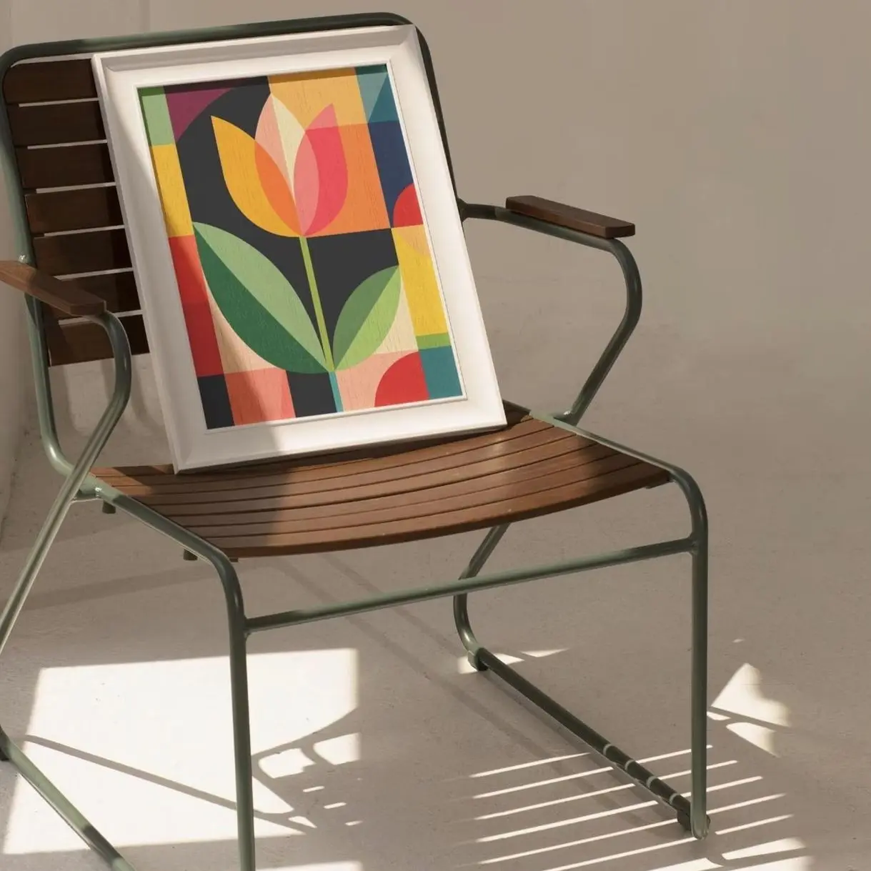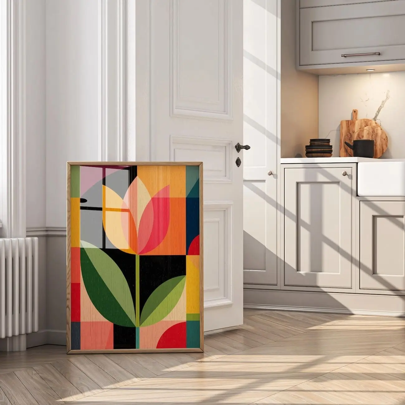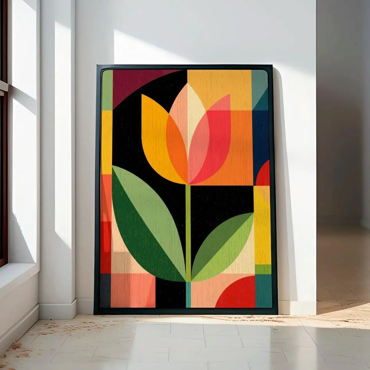 Mid Century Modern Tulip Print, Geometric Floral Wall Art, Scandinavian Style Botanical Poster | Unframed F