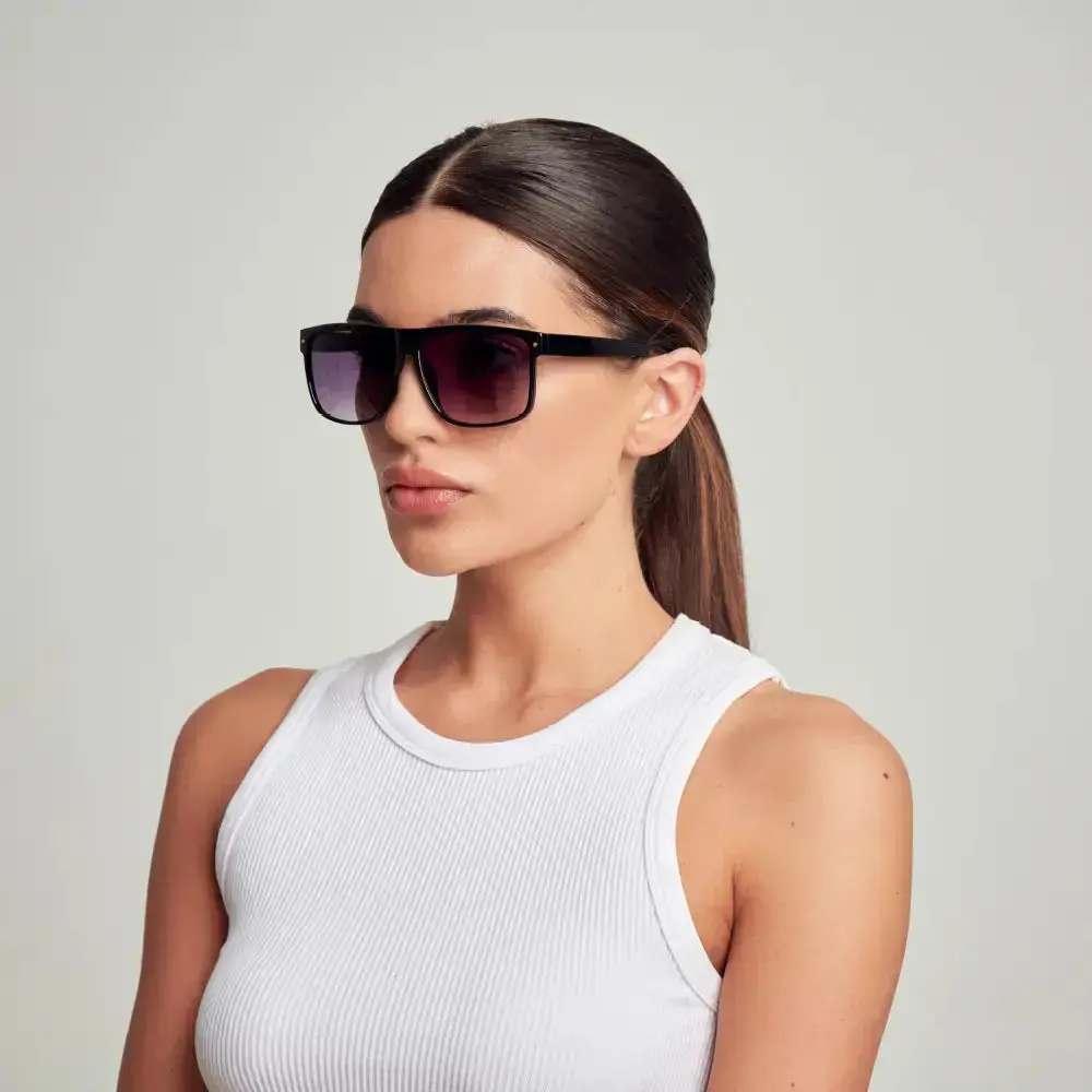 Mad Shade’s black square rectangle sunglasses are the perfect blend of classic and trendy. Inspired by 90s street style, these oversized shades feature a bold rectangular silhouette with grey gradient UV400 lenses that provide full sun protection while elevating your everyday look.