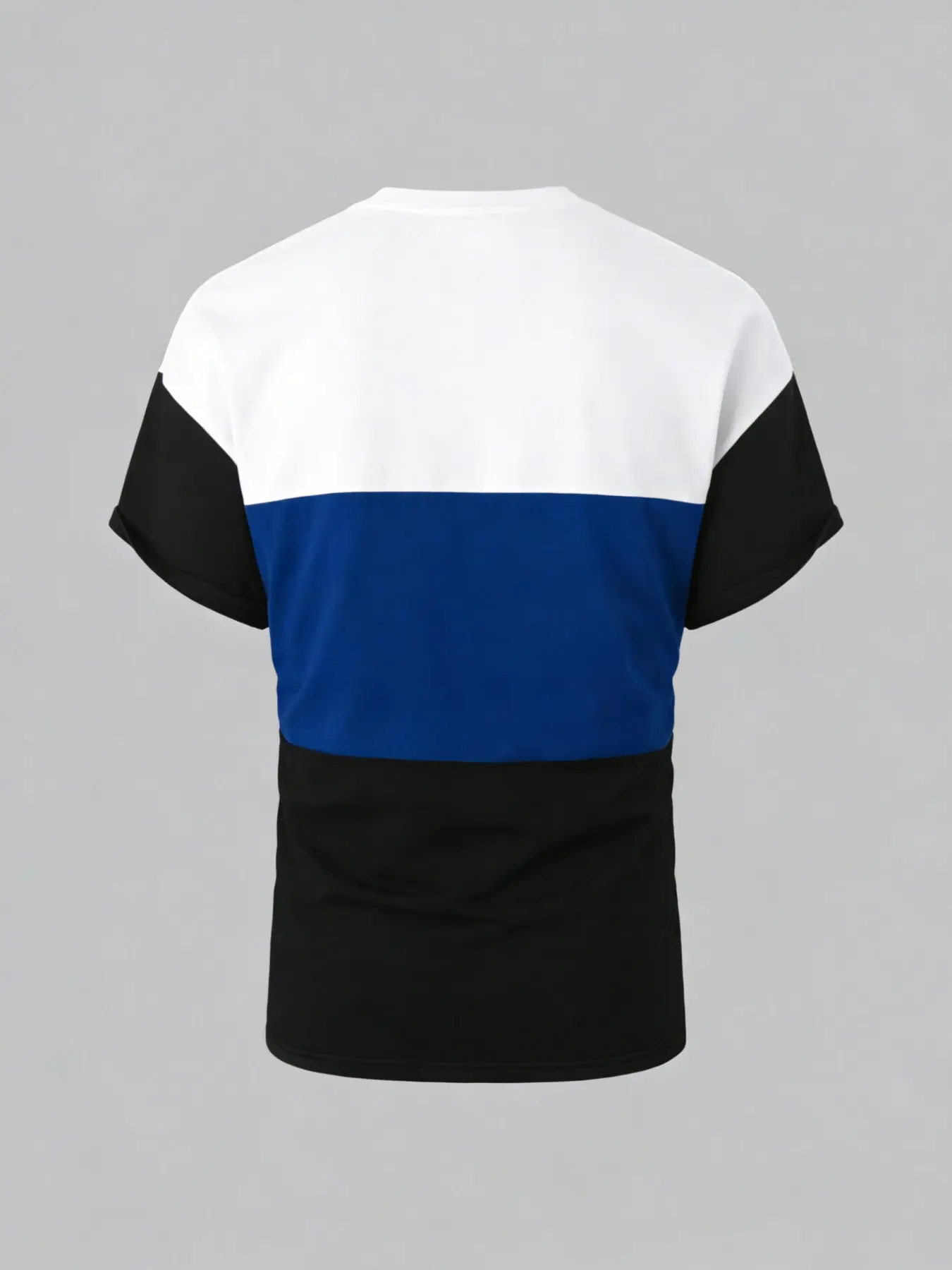 5. Men's Fashion Casual Colorblock T-Shirt, Simple Letter Print, Versatile and Stylish, Perfect for Daily Wear, Comfortable and Trendy