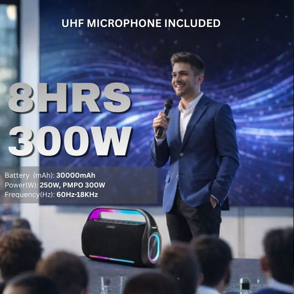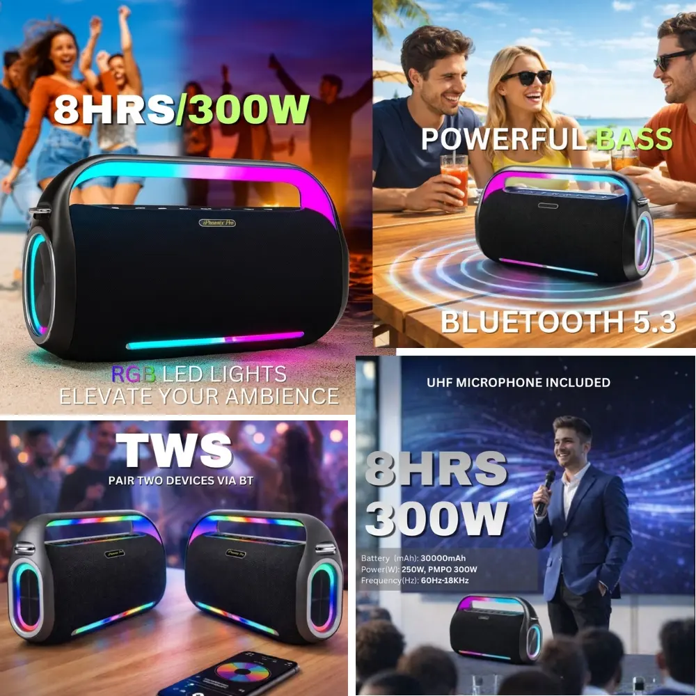 Meet the IP-4 Pro Wireless Karaoke Speaker—an audio beast built for serious sound, epic parties, and total portability. With an explosive 300W output, cutting-edge bass-boosting driver, and immersive dynamic stereo sound, this speaker doesn’t just play music—it unleashes it.