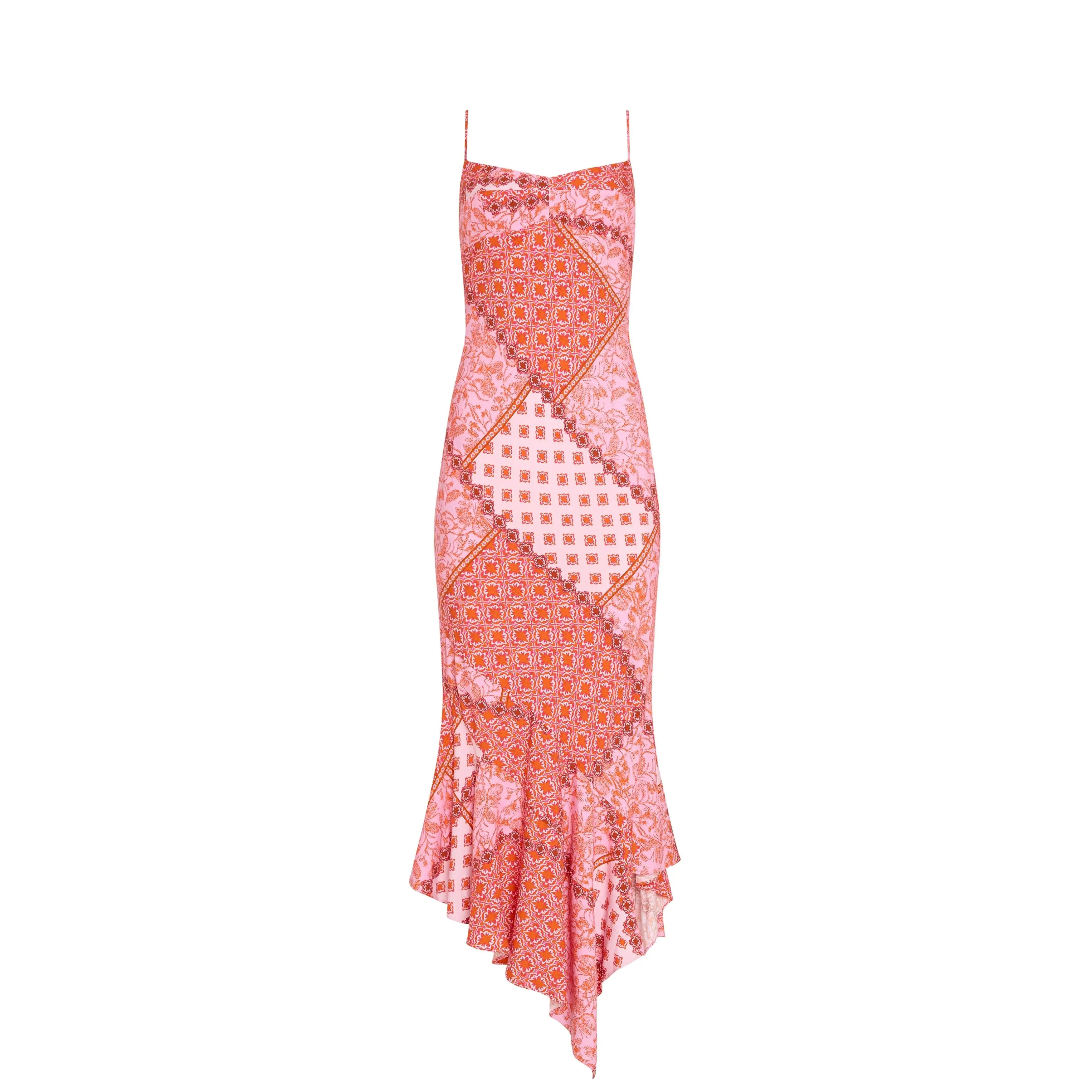 Embrace effortless elegance and vibrant summer style with the Kaysee Midi Dress. This women's flowy dress features a captivating patchwork print and a dynamic asymmetrical hem, offering a perfect blend of movement and charm. Whether you're seeking a sophisticated ensemble for a special occasion or a comfortable yet chic everyday look, the Kaysee Midi Dress adapts seamlessly to your style needs.