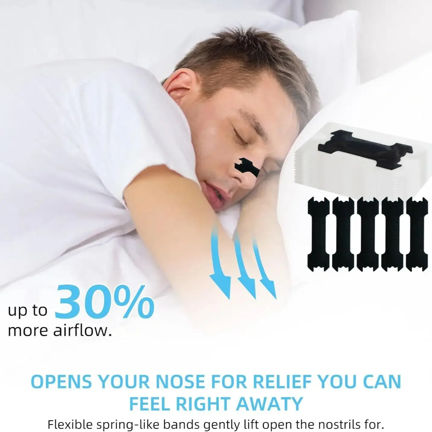 Strong Adhesive Sports Nasal Strips, Anti-Snoring Snore Stopper Physically Relieves Breathing, Expands Airflow, Improves Sleep, Gentle Micro-Pores