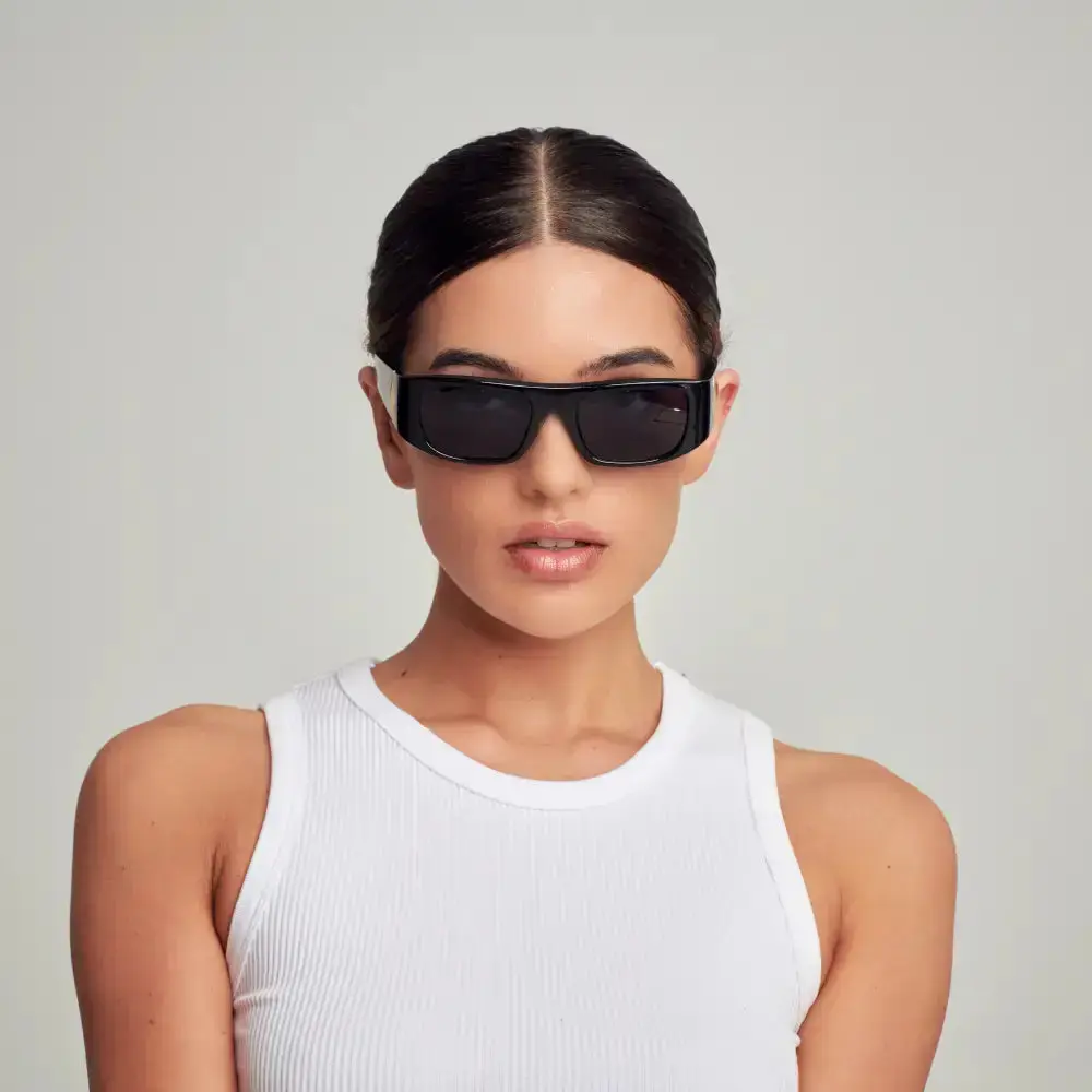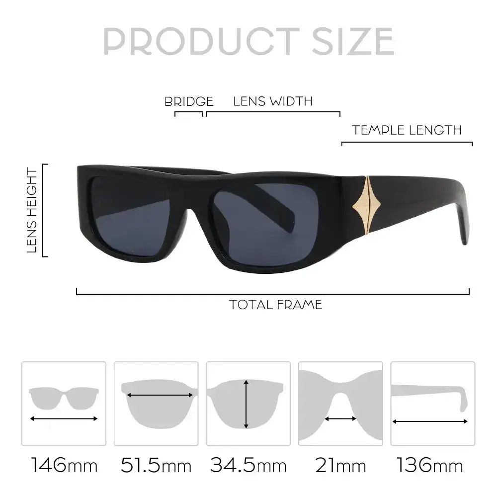 ·Bold retro frame: striking black rectangle silhouette with gold temple detail delivers a true 90s edge
