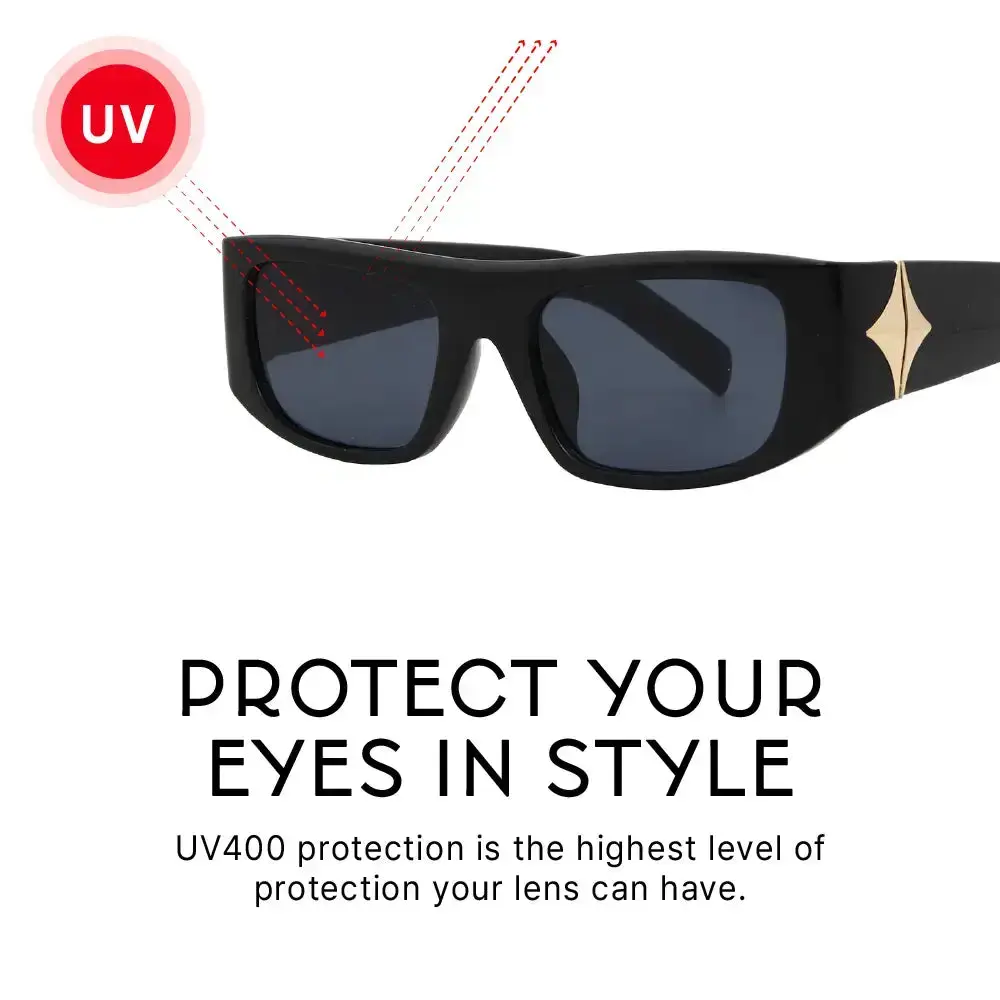 Turn up the attitude with Mad Shade’s sleek black rectangle sunglasses. Featuring sharp edges, gold temple detail, and full UV400 lens protection, these shades are built for confident, trend-setting looks. A must-have for retro lovers.