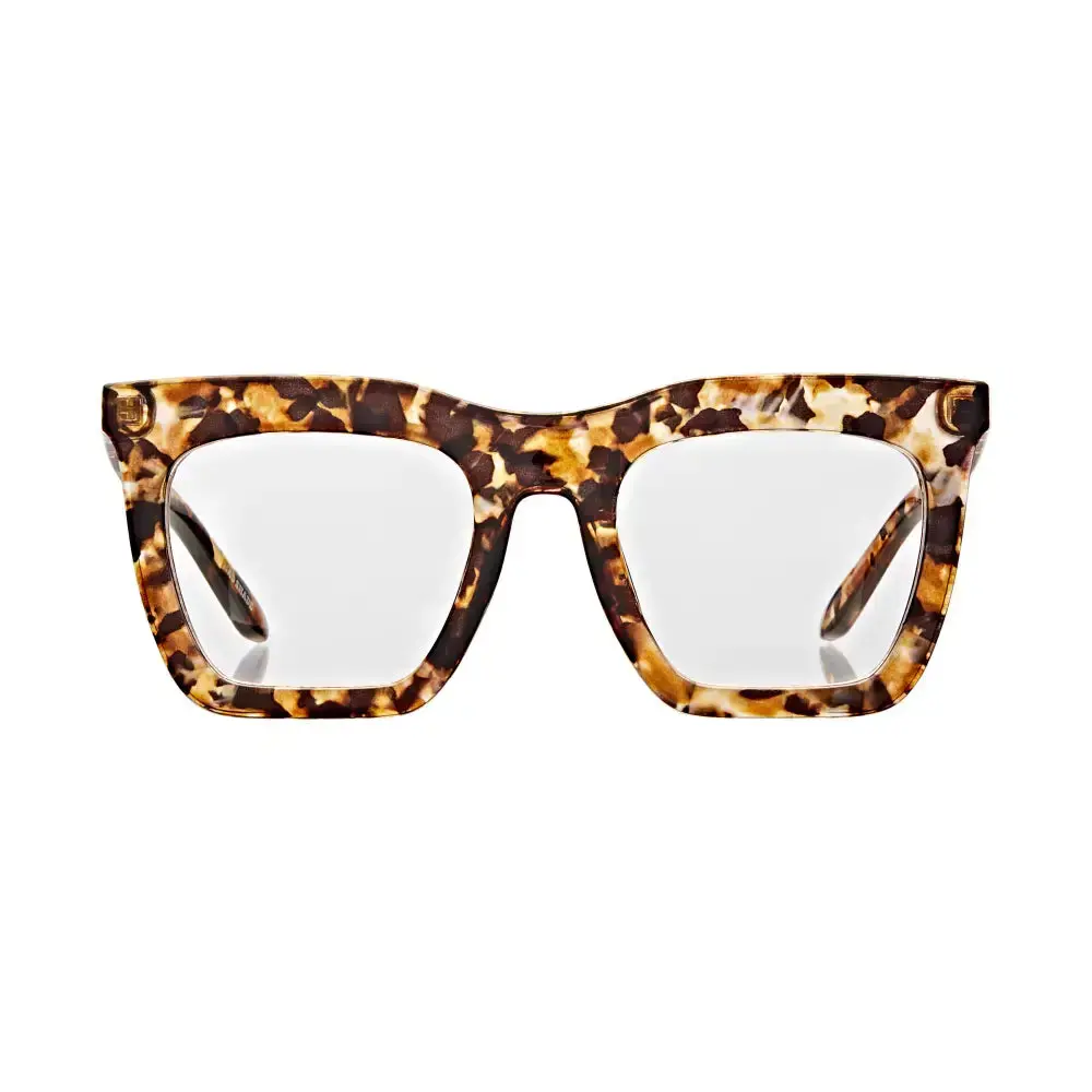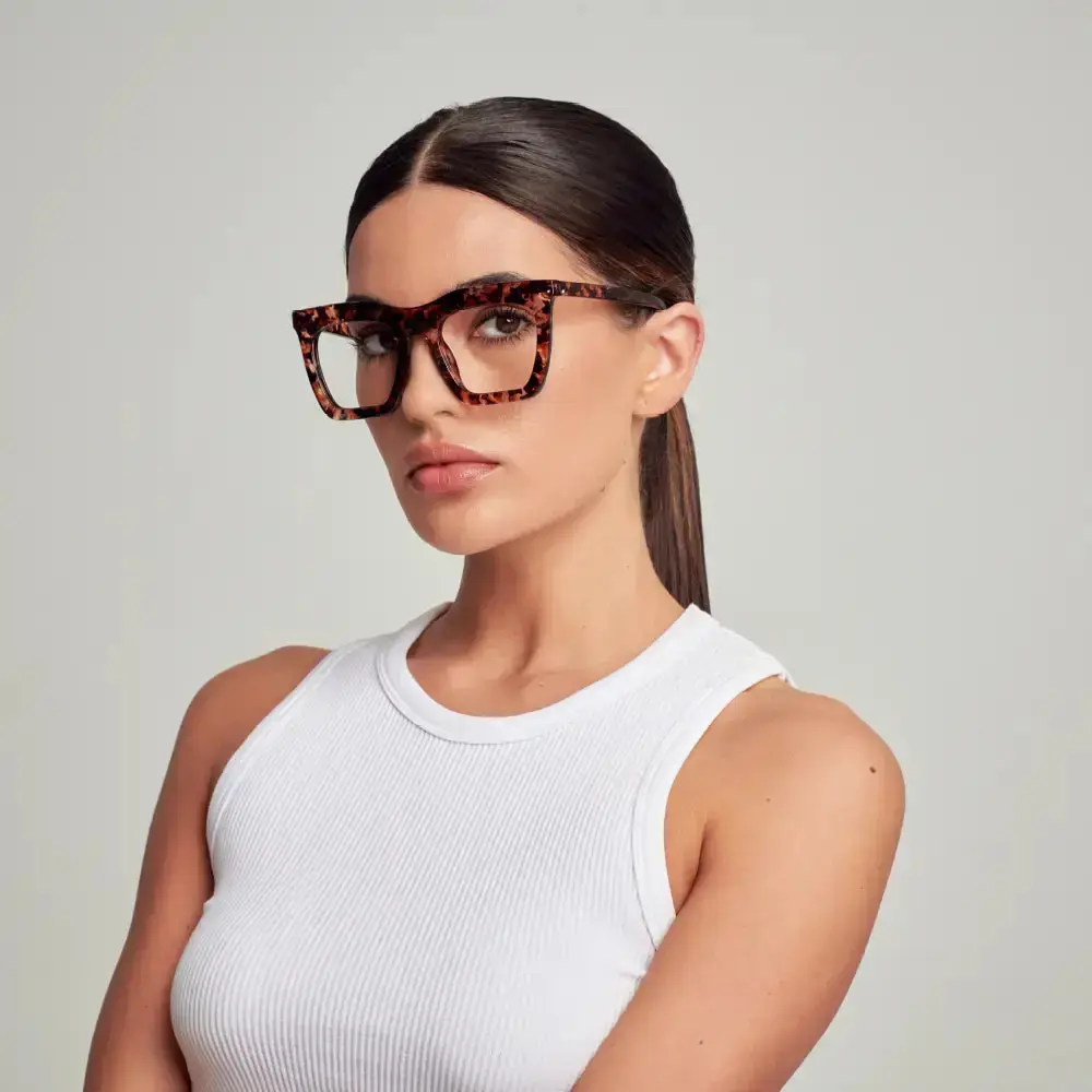 ·Bold 90s frame: oversized square silhouette with thick tortoise pattern adds vintage edge to any look