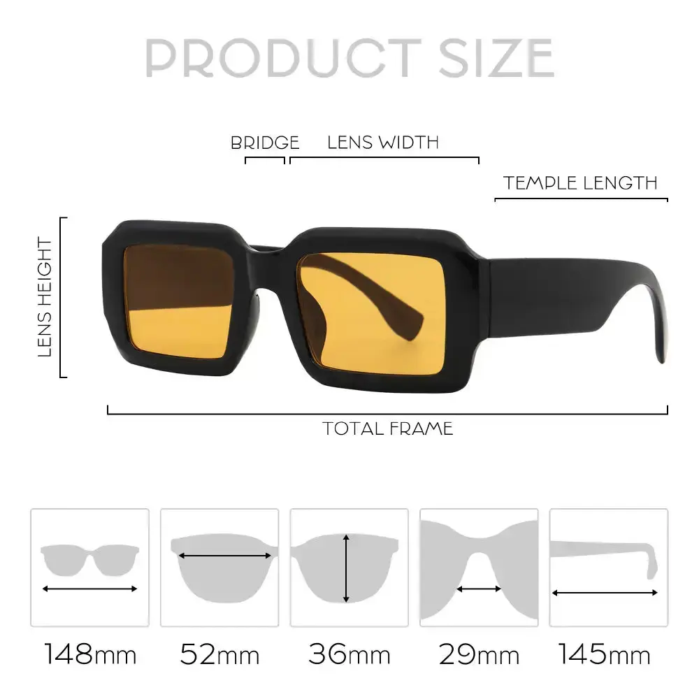 ·Retro square design: Bold rectangle frame adds vintage 90s flai