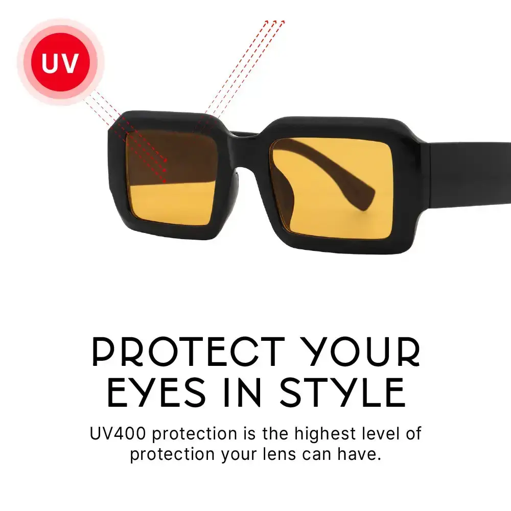 Step into the spotlight with Mad Shade’s bold black square sunglasses. Featuring sharp retro lines, orange-tinted lenses, and UV400 protection, these shades are made to stand out. Perfect for both men and women who love fearless, fashion-forward looks with a vintage-inspired style.