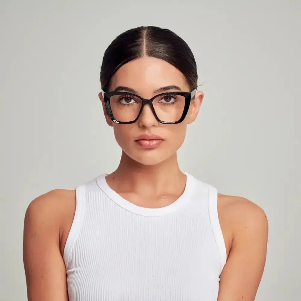 · Bold cat-eye silhouette: sharp, oversized black frame offers retro drama with a modern twist