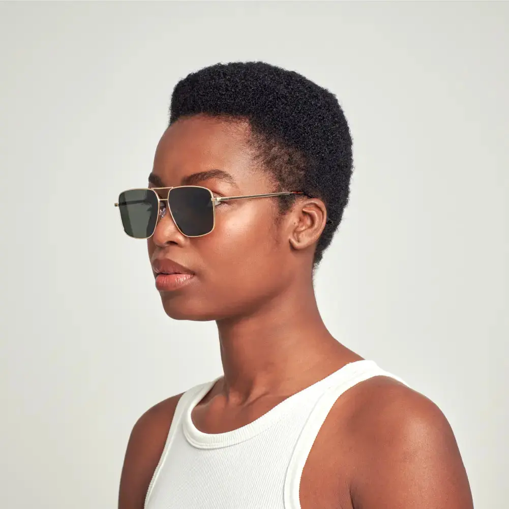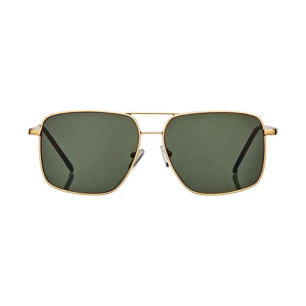 ·Modern square aviator frame: gold-tone copper with sharp lines and retro double bridge