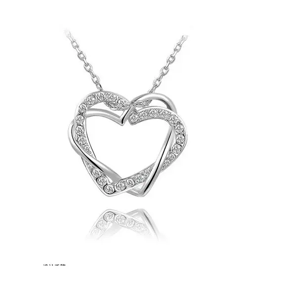 This set features a double diamond heart necklace and earrings, embodying a Korean style. The heart shape is crafted from alloy, impregnated with crystal for a sparkling effect. Perfect for women, it combines style with sophistication. The necklace includes an extension chain up to 10cm, offering adjustable length. Choose from silver or gold colors.