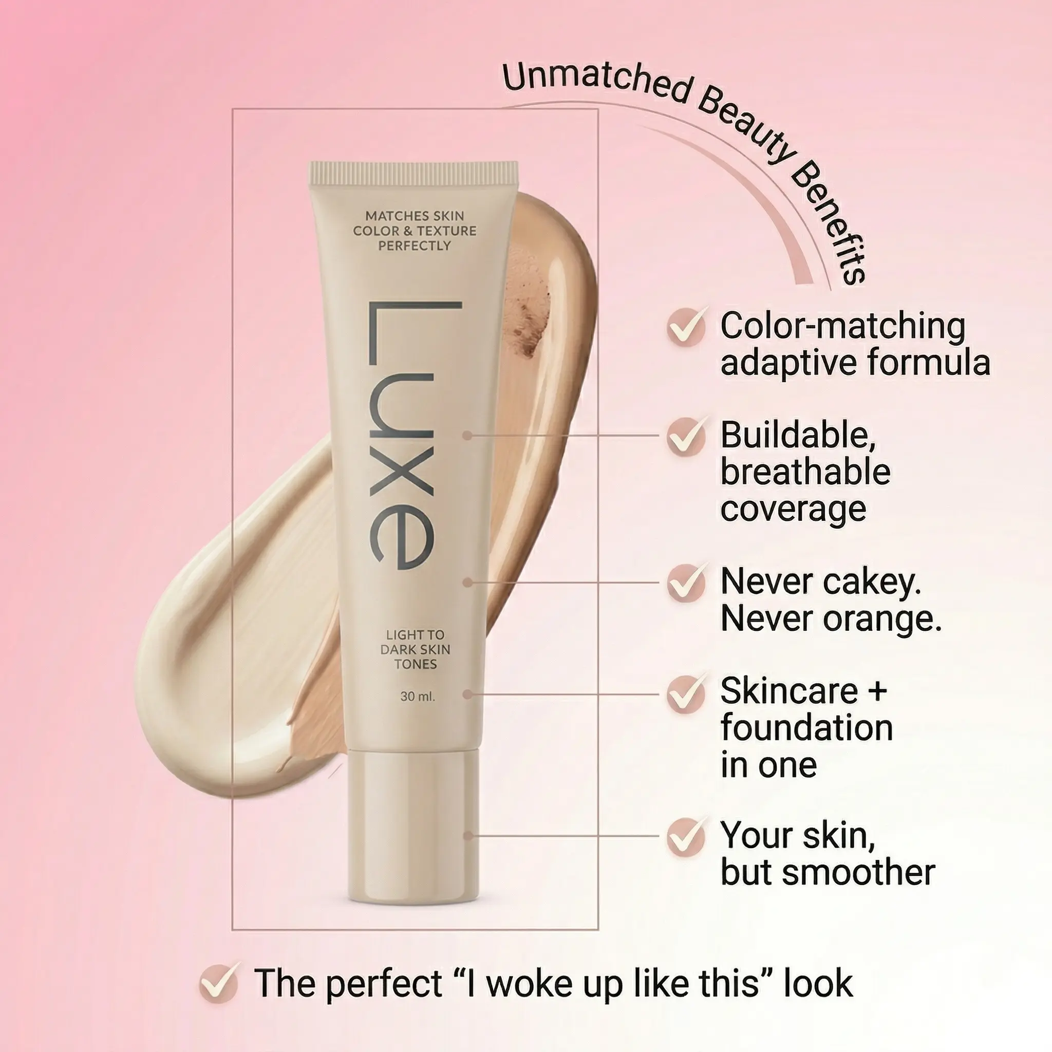Color Changing Foundation for Women – Instantly Adapts to Your Skin Tone – Buildable Light-to-Medium, Medium Dark-to-Dark, Coverage – 12-Hour Wear – Natural Dewy Finish