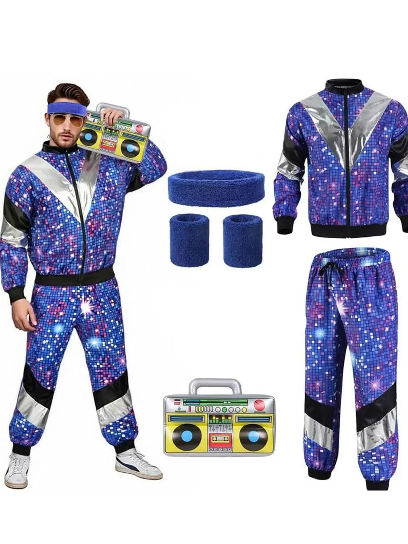80s Tracksuit Men's Disco Costume 80s 90s Outfit Men's with Accessories Retro Jogging Suit Outfit for Men Hip Hop Sportswear Fancy Dress Costumes Theme Party Cosplay Carnival