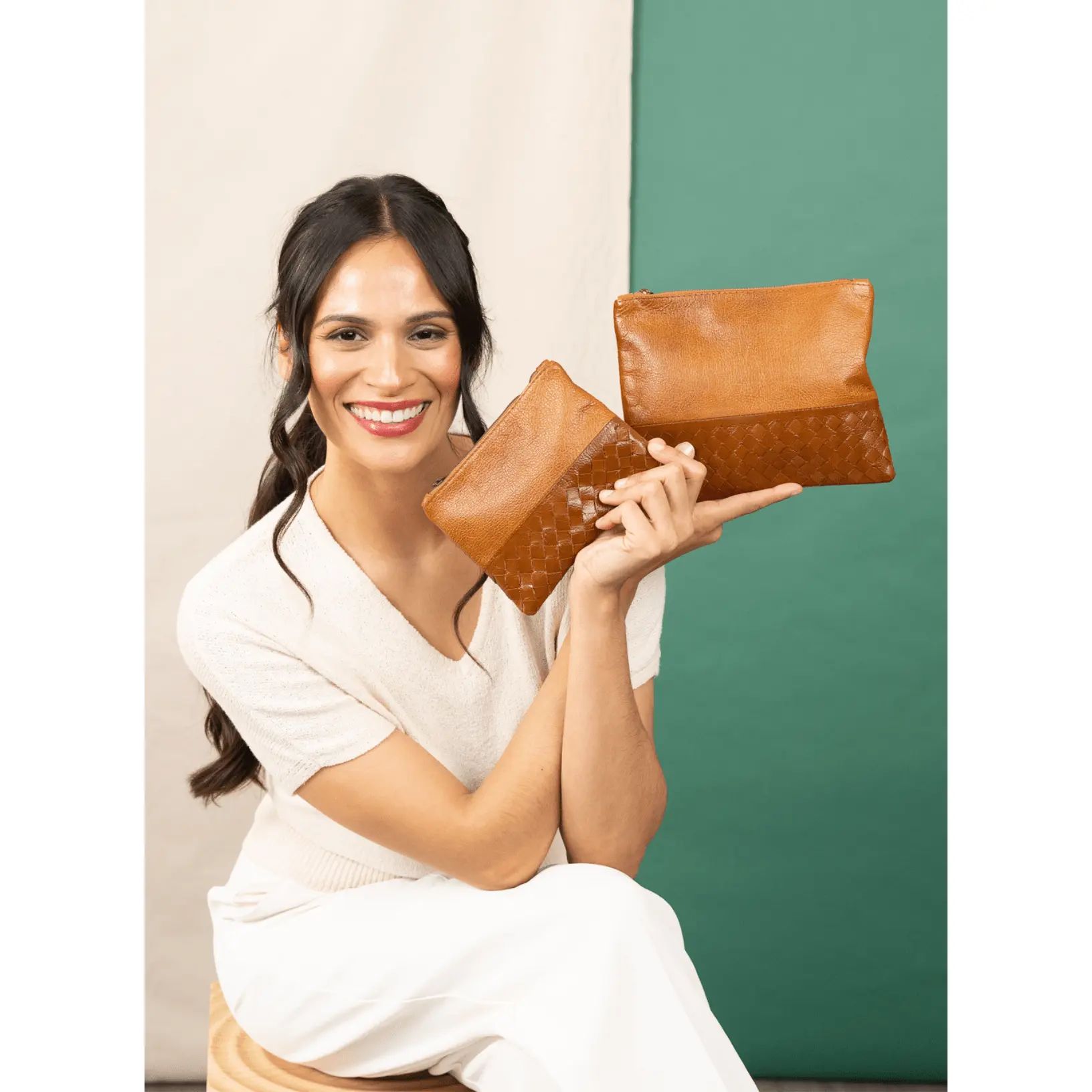 The Woven Large Pouch is a fusion of expert craftsmanship and bold design. Featuring intricate handwoven detailing, this spacious accessory is perfect for those who appreciate both style and practicality. Each piece is crafted from responsibly sourced surplus leather, making no two bags exactly alike. Small variations in color and texture are part of their story.
