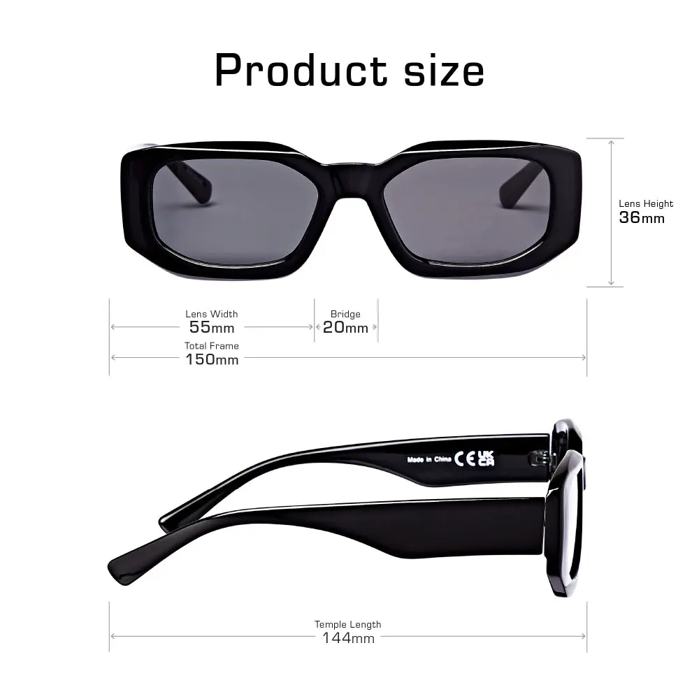 ·Style: Oversized black square frames with black tint lens, saddle bridge