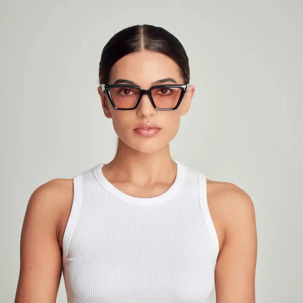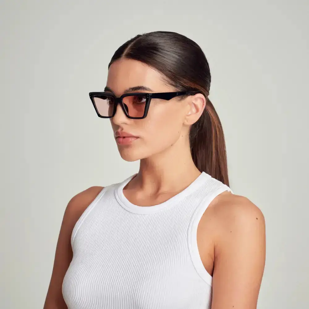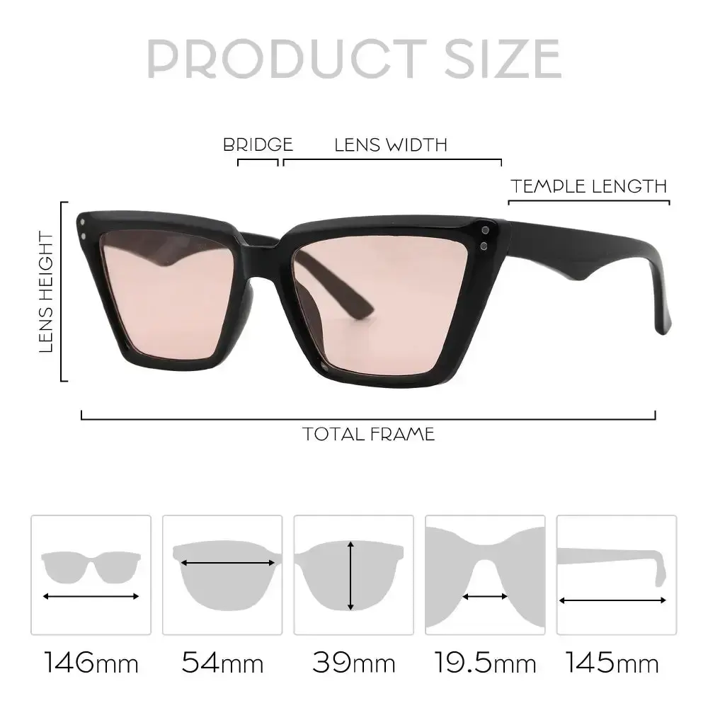 Mad Shade’s black square cat eye sunglasses bring a bold 90s vibe to your modern-day looks. With a flattering oversized frame and soft pink gradient lenses, these shades offer just the right mix of retro charm and statement style