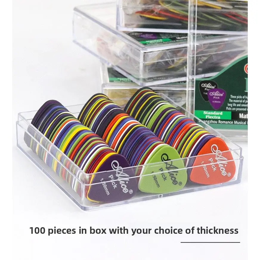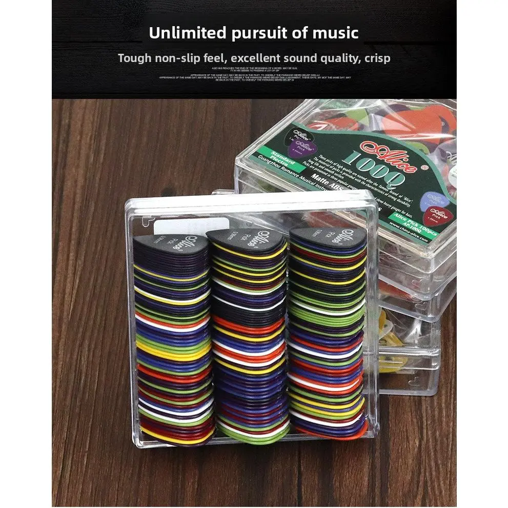 100-piece guitar picks, with storage box, mixed pack, in various colors, 6 different thicknesses, suitable for bass, electric guitar, acoustic guitar, metal guitar, ukulele