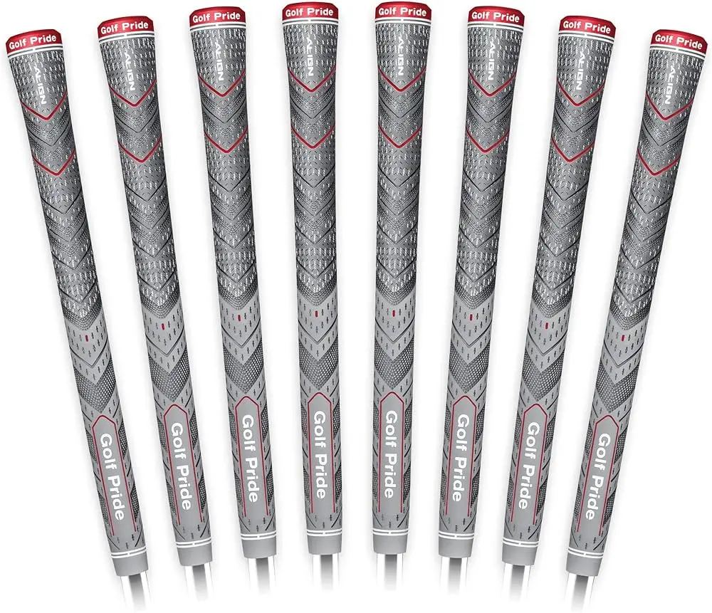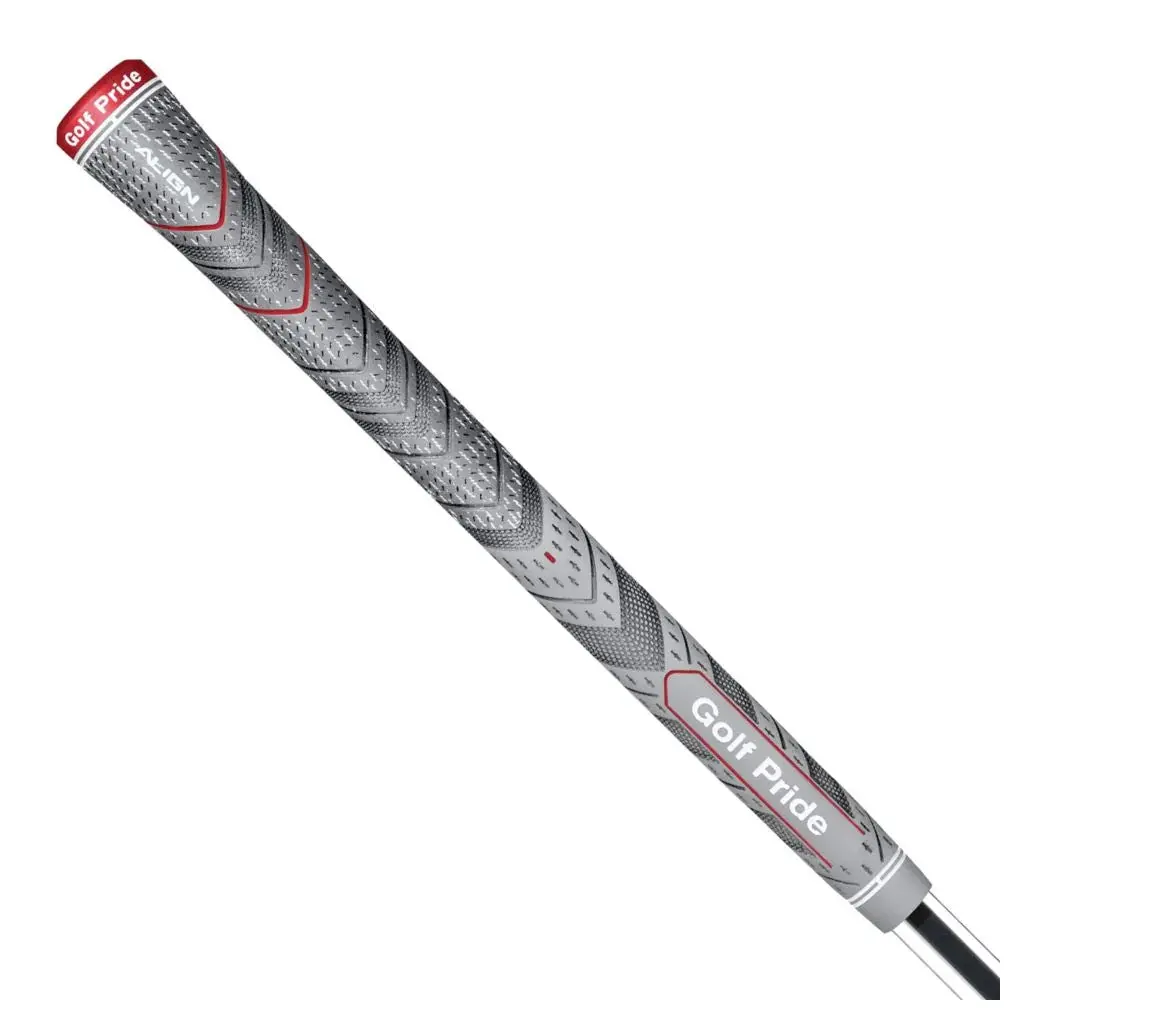 Elevate your golf game with the Golf Pride MCC Plus4 Align Golf Grip, all-weather hybrid grip designed for optimal performance and comfort. Featuring innovative Raised Ridge Technology, this midsize grip ensures enhanced control and alignment, helping you play your best on every shot. The sleek grey and red accents add a stylish touch to your clubs, making them stand out on the course.