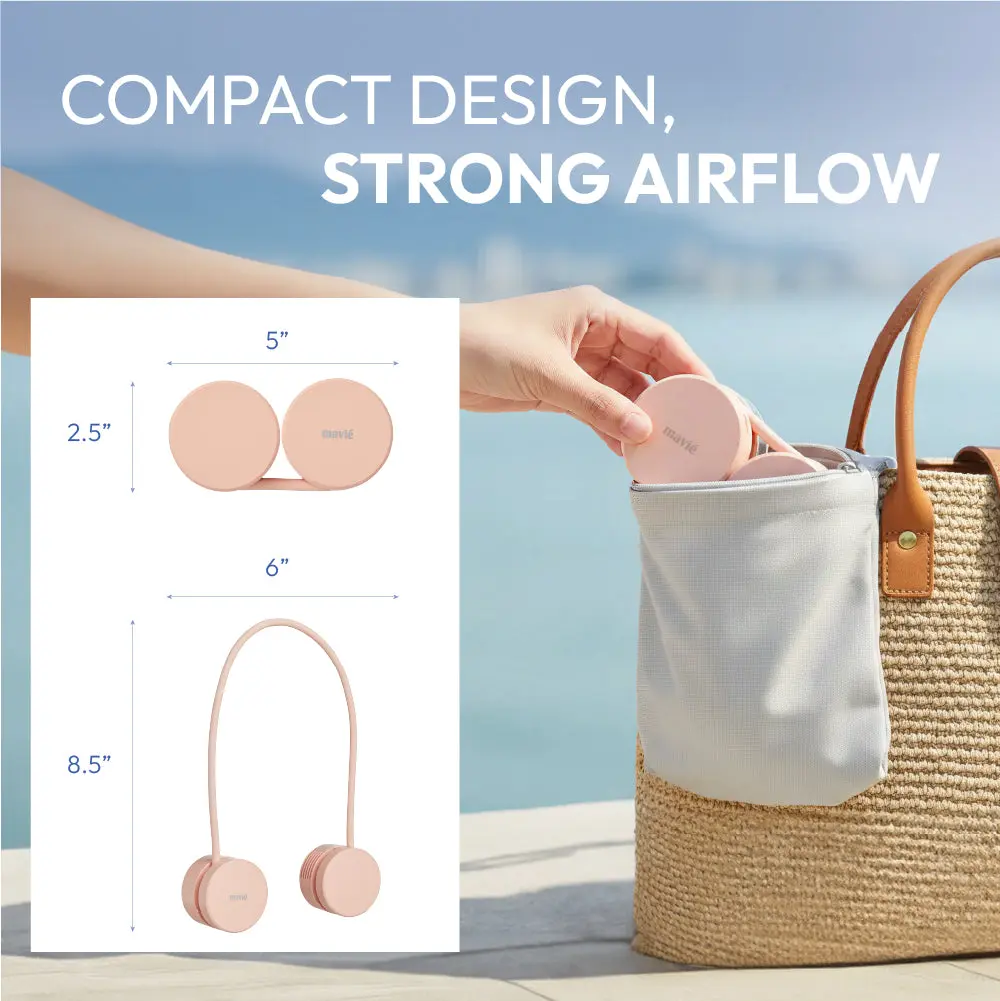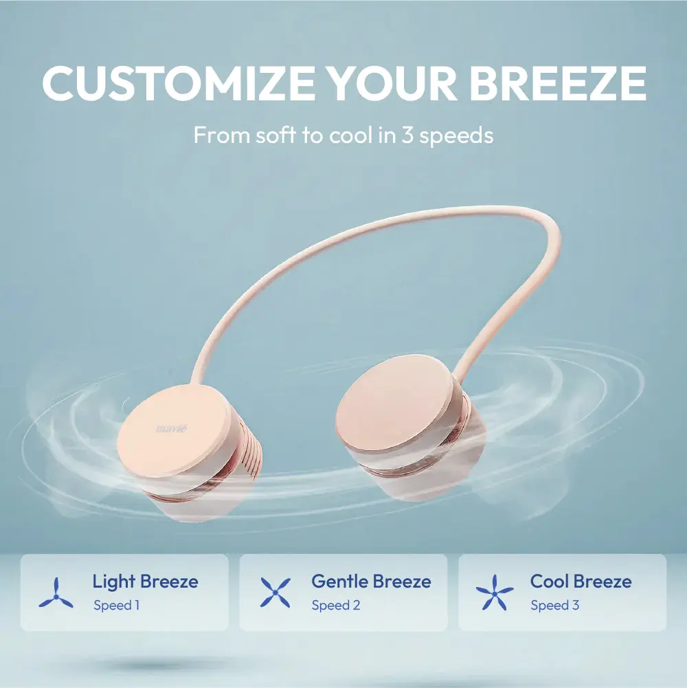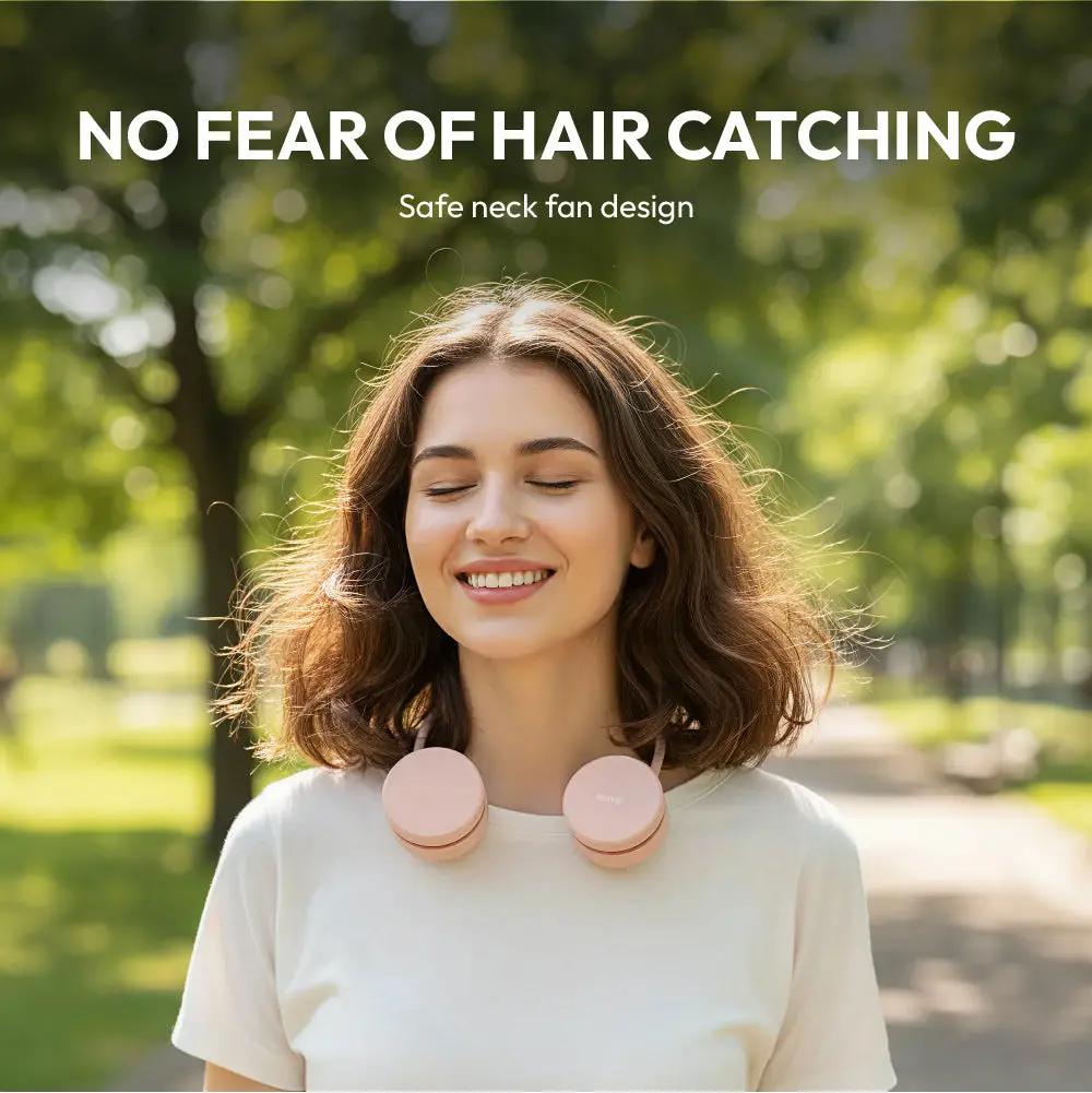 Stay effortlessly cool and comfortable with the MAVIÉ Portable Personal Neck Fan. Designed for active lifestyles, this innovative bladeless fan rests comfortably around your neck, providing a continuous, refreshing breeze without the hassle of holding it. Its unique 360° flexible and collapsible design makes it incredibly easy to pack into any bag. Featuring an upgraded hair-safe mechanism, 3 adjustable speed settings, and a long-lasting 1600mAh rechargeable battery, it's your perfect companion for commuting, outdoor activities, or simply relaxing on a hot summer day.