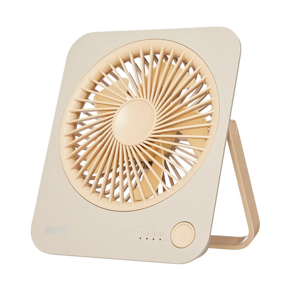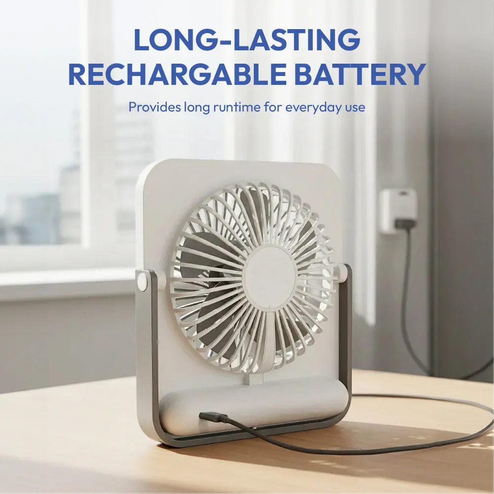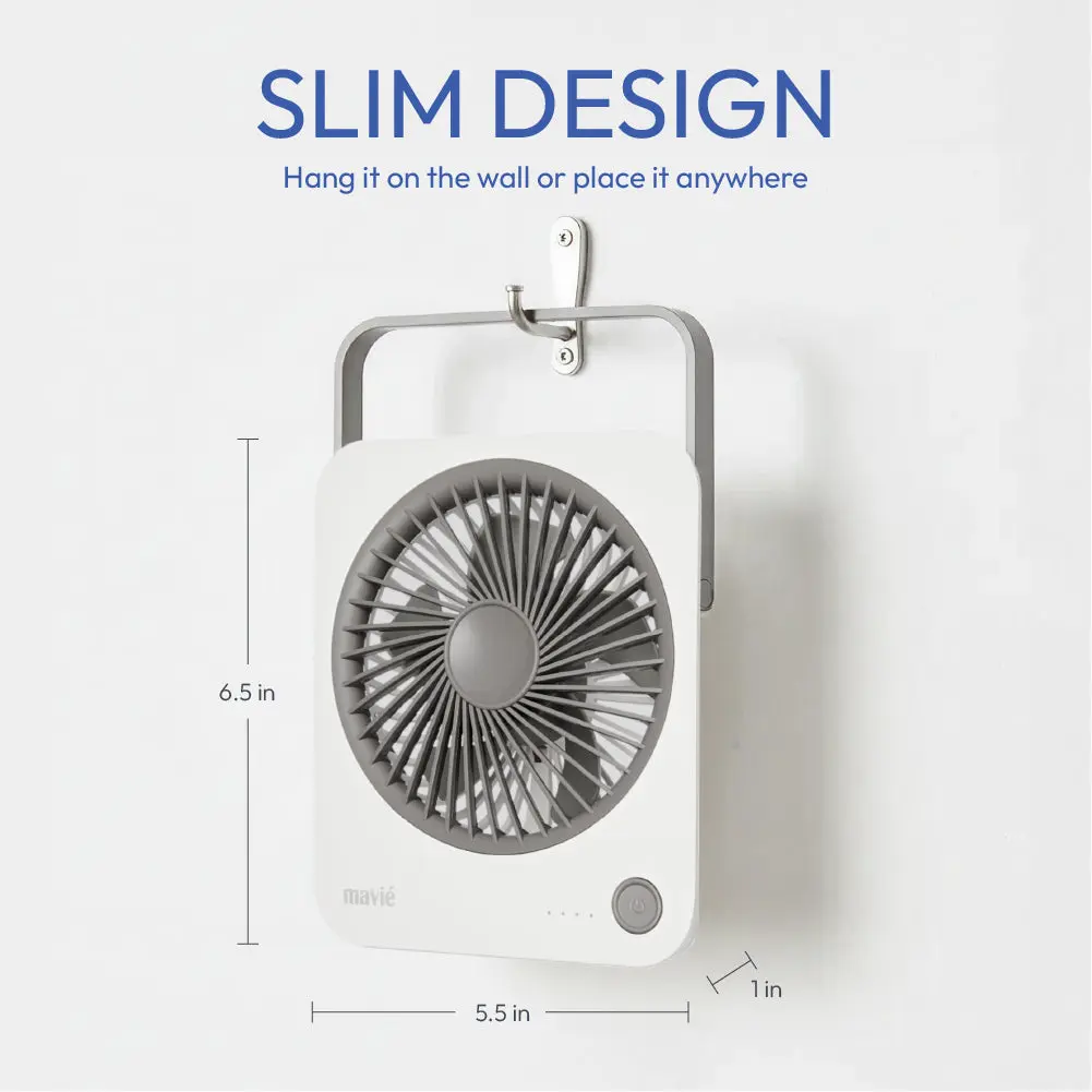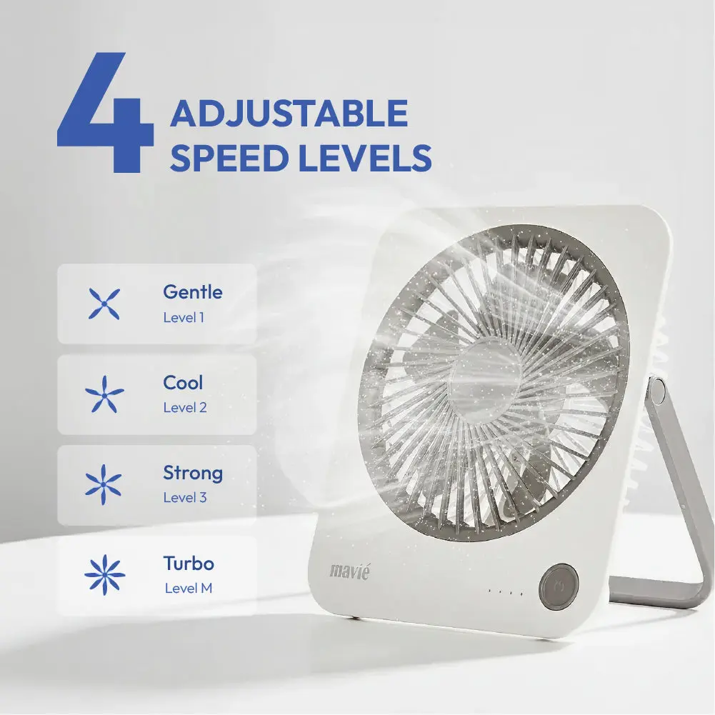 Upgrade your workspace or travel setup with the MAVIÉ Small Desk Fan. Engineered with an ultra-thin, slim design measuring just 1 inch thick, this portable fan easily slips into your luggage or rests elegantly on any table. Its innovative 180° foldable stand allows for flexible angle control, letting you place it upright on a desk or seamlessly hang it on a wall for targeted cooling. Featuring 4 adjustable speed levels and a long-lasting rechargeable battery, it delivers powerful, quiet airflow wherever you need it—making it a true essential for your home, office, or bedroom.