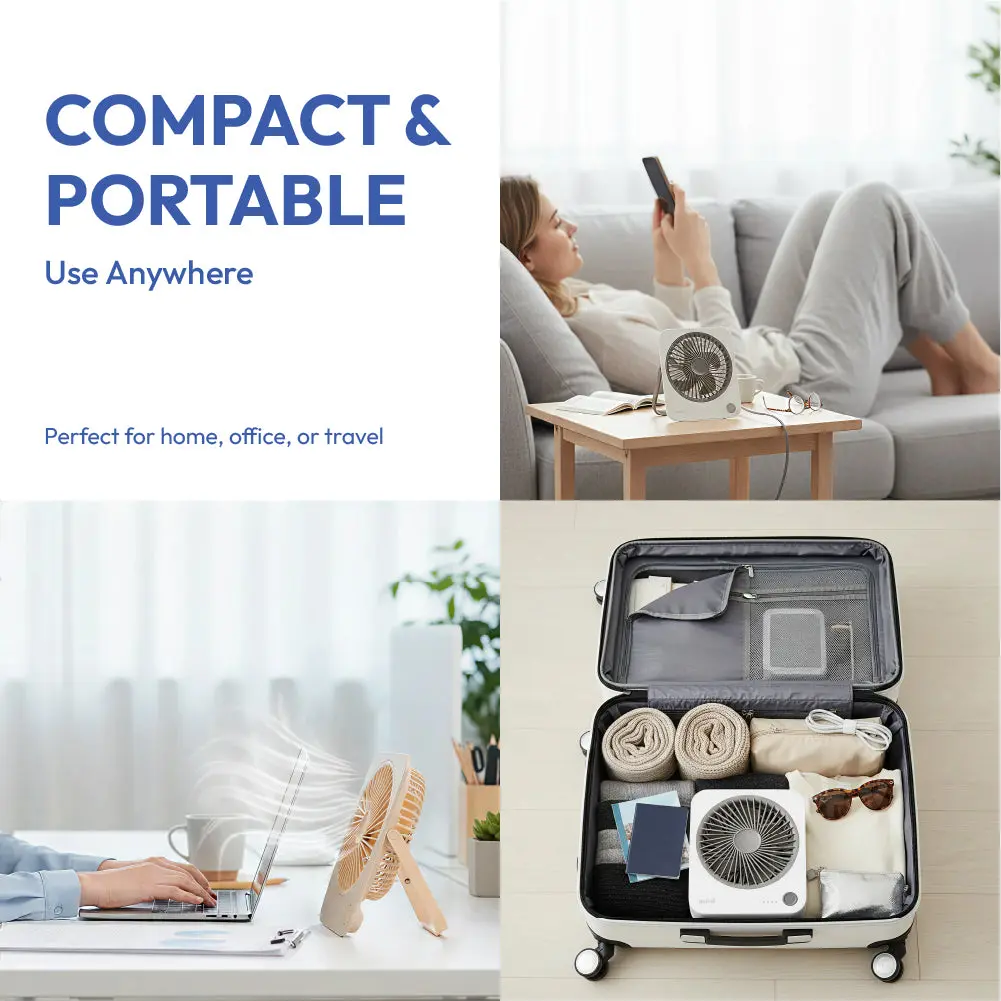 ·Ultra-slim & portable: Measuring just 6.5" x 5.5" x 1", this highly compact fan fits effortlessly in suitcases and bags, making it perfect for travel or tight desk spaces.